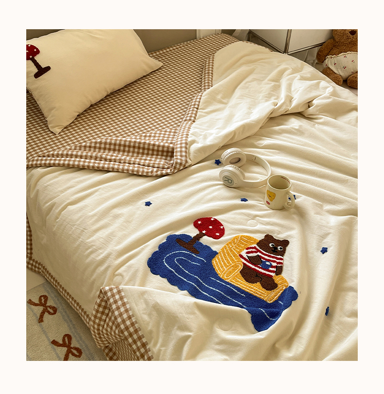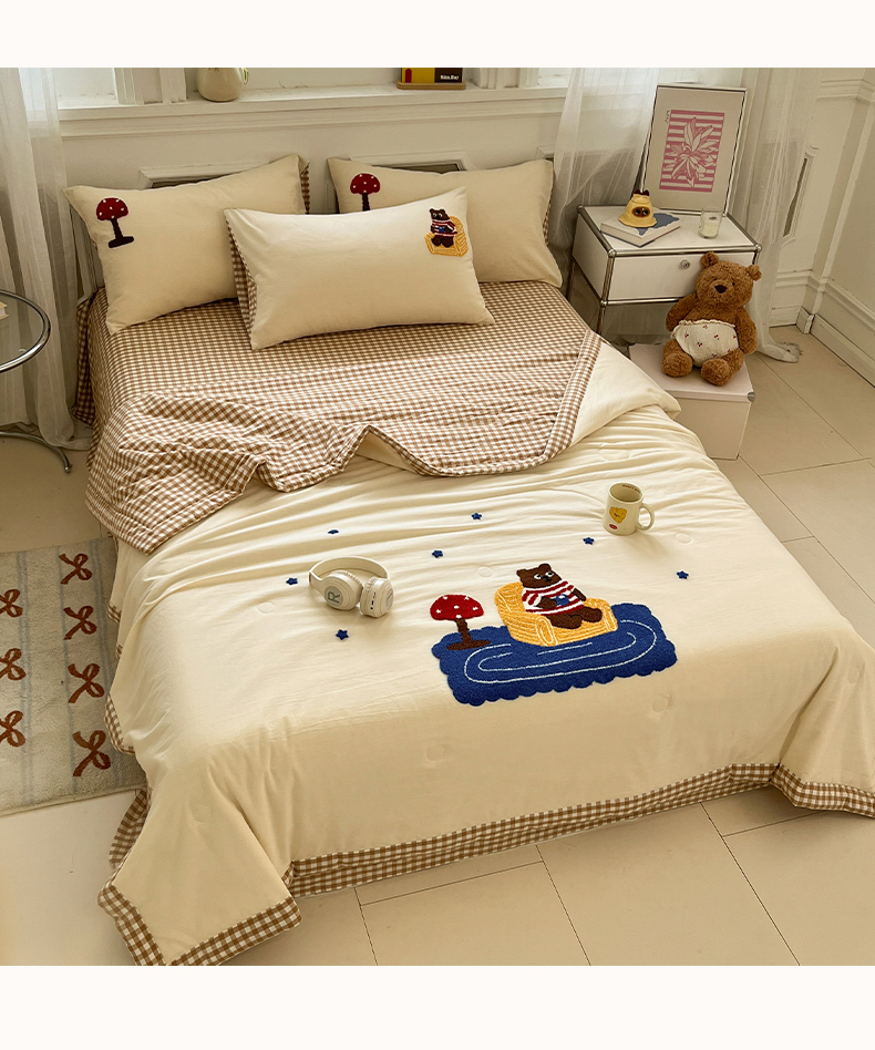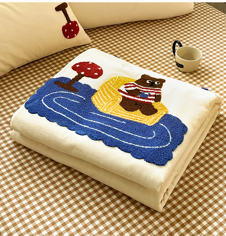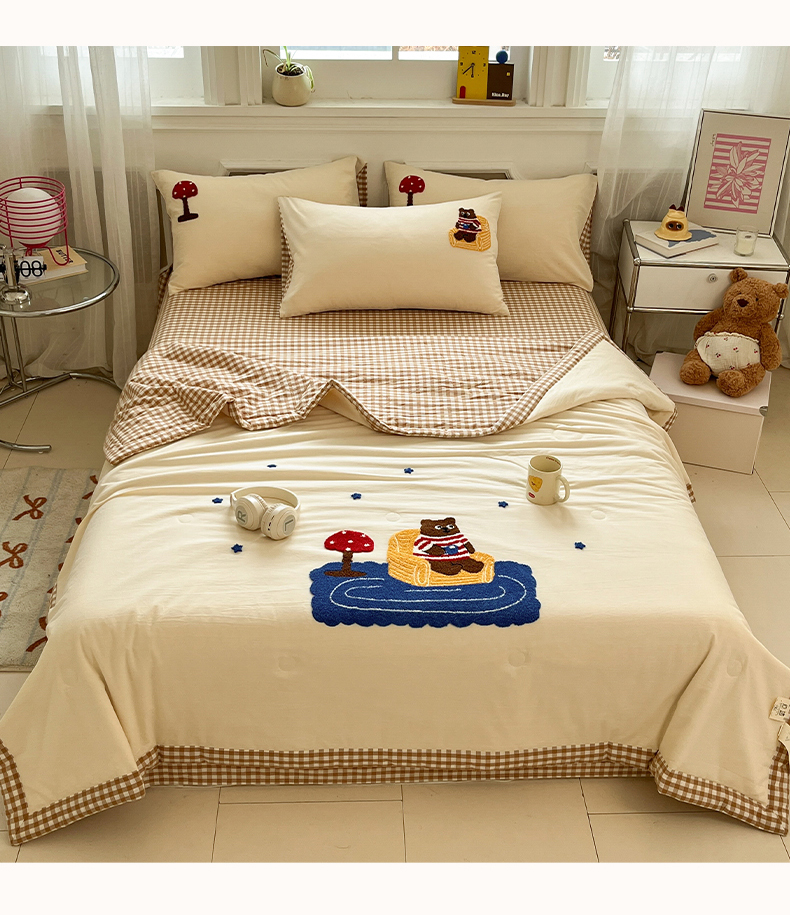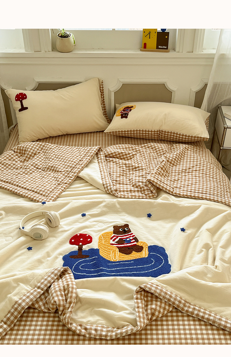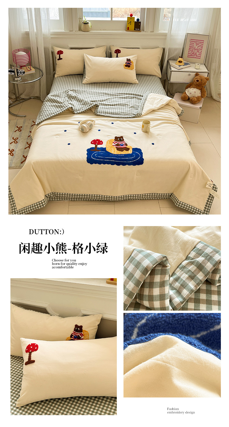 • 91家纺网 家纺一手货源 找家纺 一加一 2026新款全棉色织水洗棉毛巾绣大豆夏被夏凉被空调被四件套-闲趣小熊 闲趣小熊-格小米