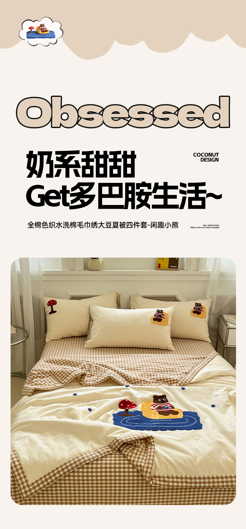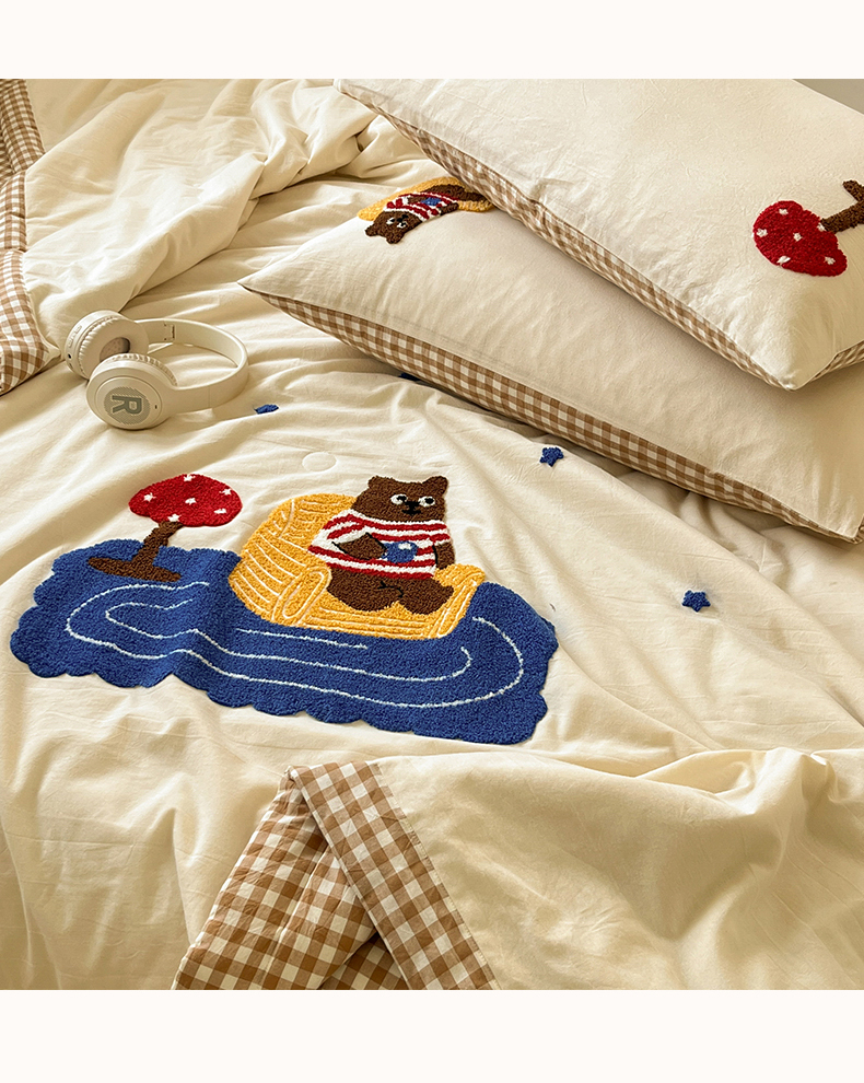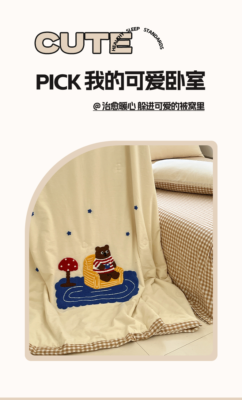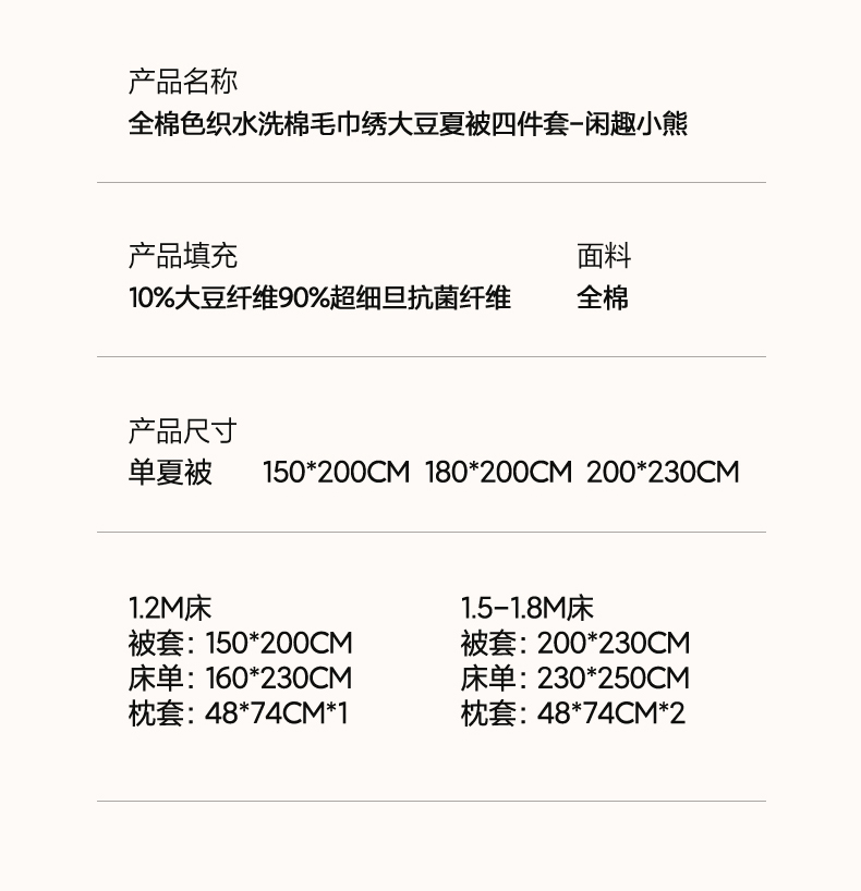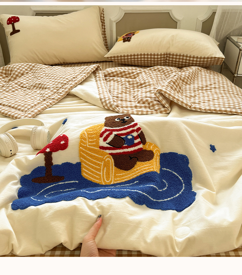 • 91家纺网 家纺一手货源 找家纺 一加一 2026新款全棉色织水洗棉毛巾绣大豆夏被夏凉被空调被四件套-闲趣小熊 闲趣小熊-格小米
