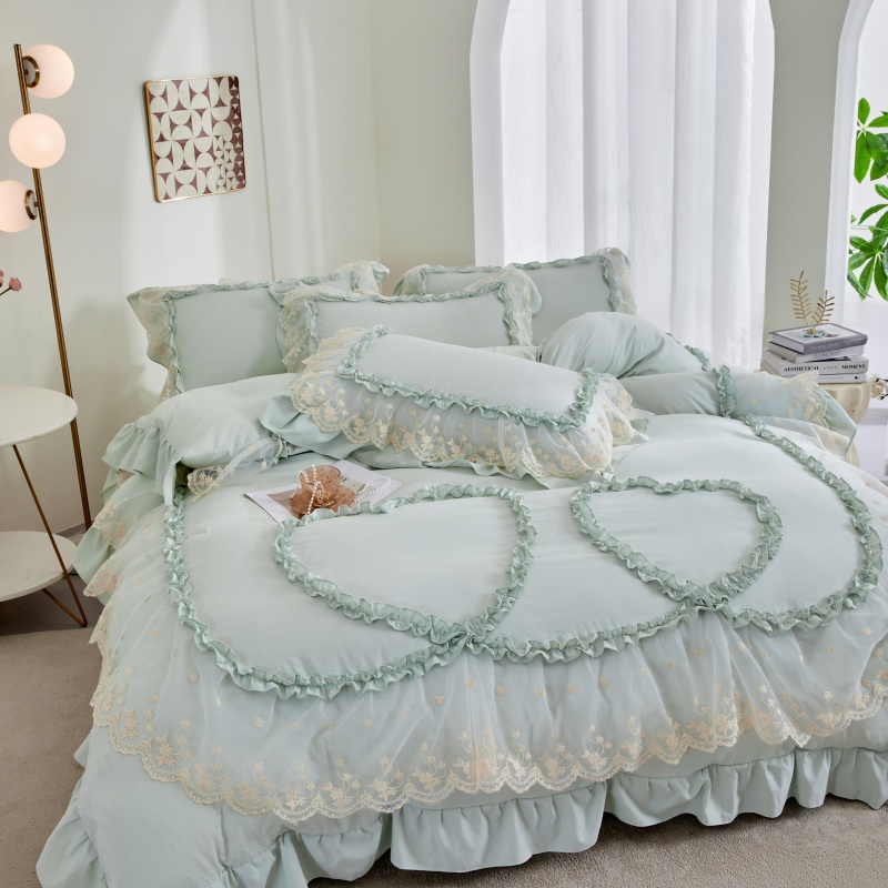 (总)七里香 2026春夏新款加厚锦棉雪纺蕾丝法式仿棉床盖韩版公主风四件套