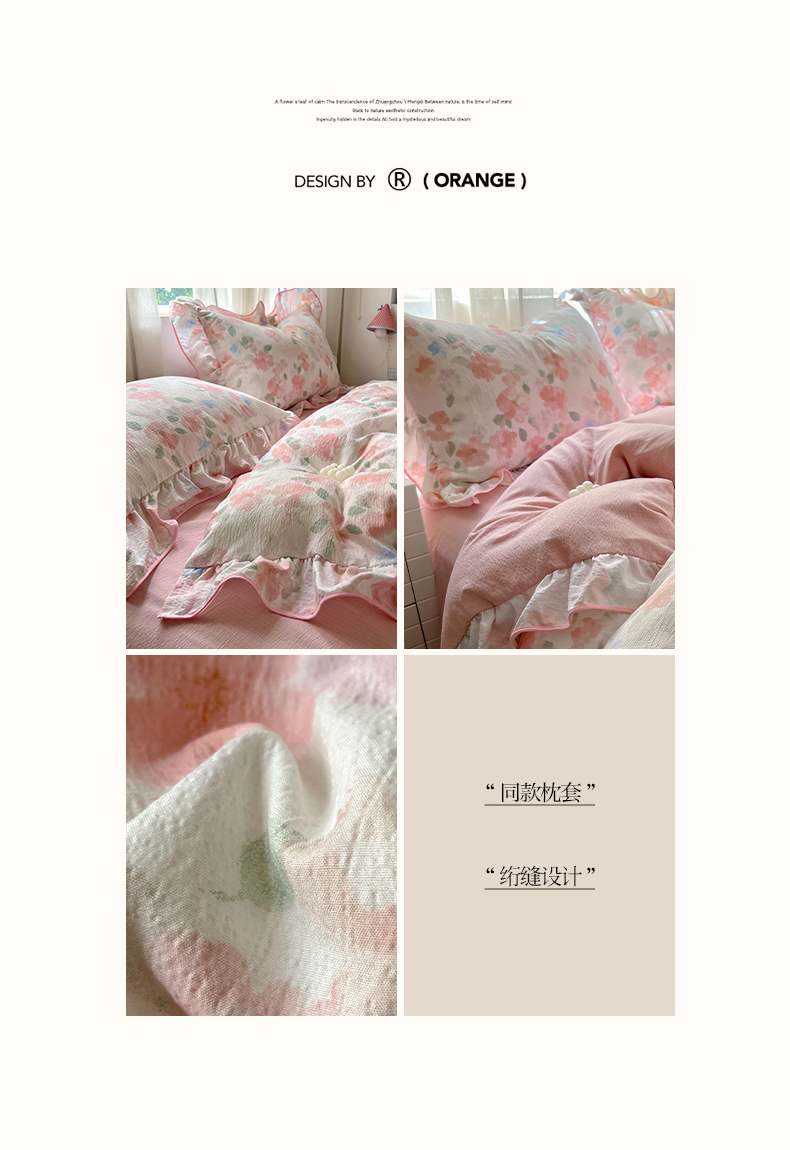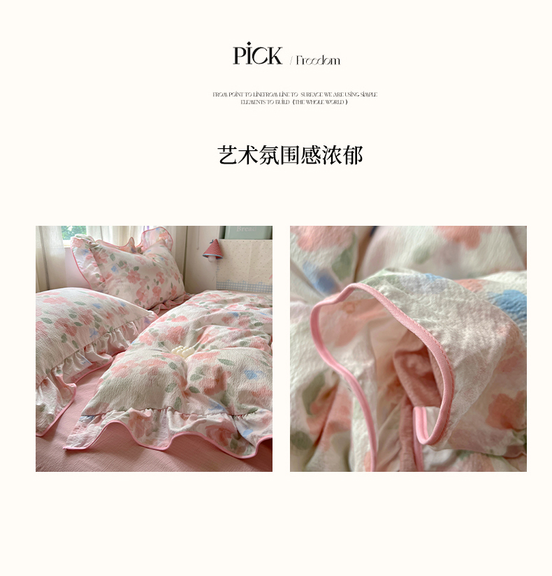 (总)睡美美家纺 2026新款皱皱纱肤感花边四件套,百福蓝,绿野,梦境织格,摩卡樱桃,桃乐丝,夭夭,莹光,旧梦蔷薇,紫风铃