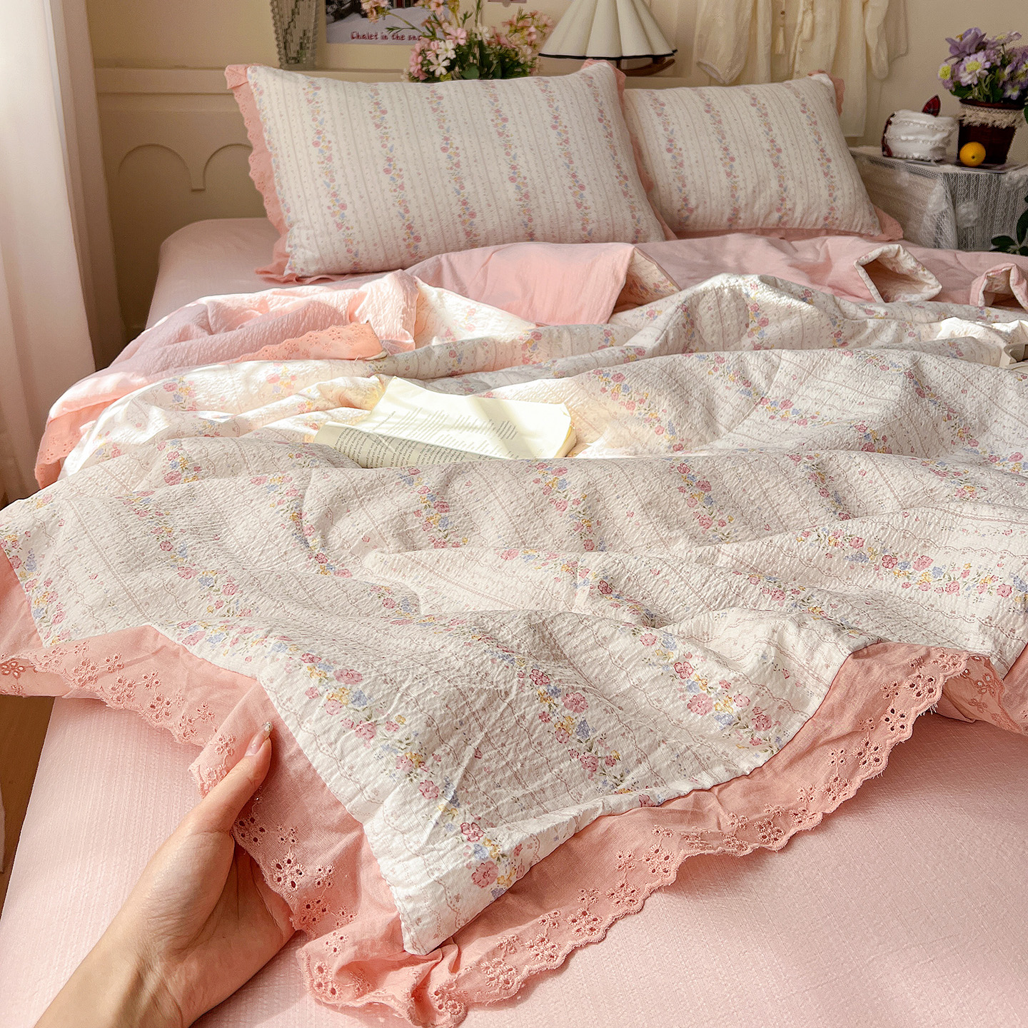 当前位置: 91家纺网 > 商品网购 > 床品套件 > 四件套 > 夏被四件套 > 瑞禾家纺 2026新款彩色花边木棉皱皱纱夏被四件套 午后花园