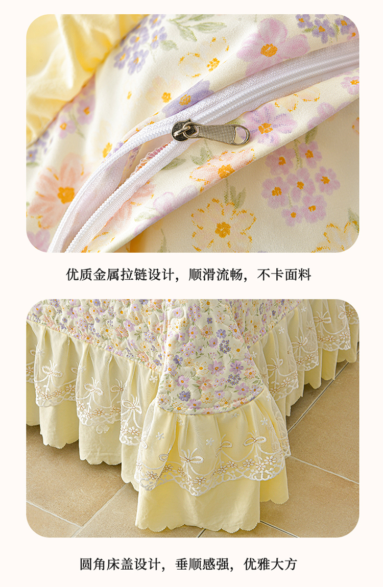 (总)三友家纺 直播爆款纯色韩版牛奶绒蕾丝花边床盖床裙单件三件套四件套,花颂-粉色,花颂-卡其,花颂-墨绿,花颂-浅紫,花颂-深灰,花颂-深蓝,花颂-天蓝