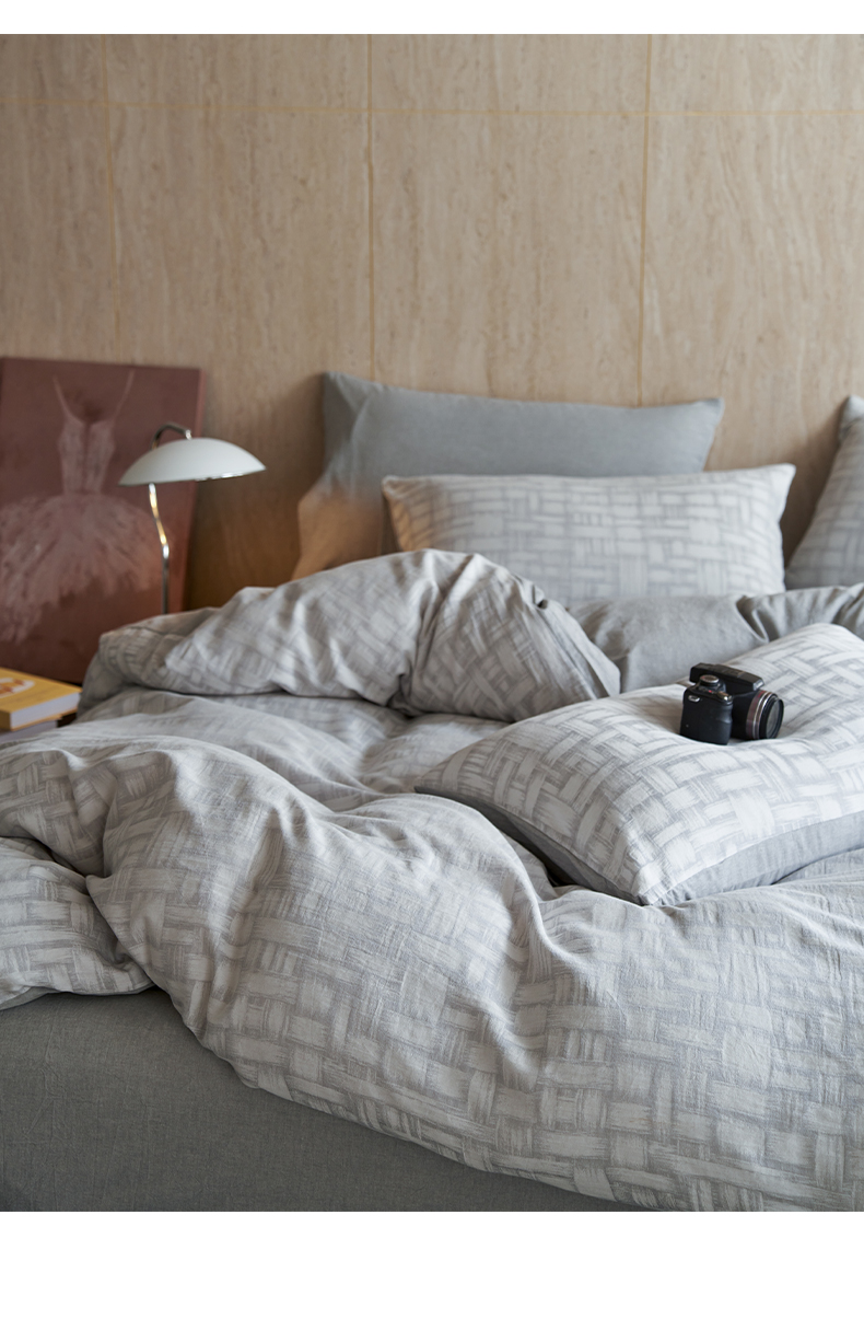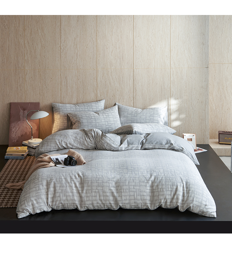 当前位置: 91家纺网 > 商品网购 > 床品套件 > 四件套 > 全棉普通四件套 > 如一 2026春夏新款色织提花全棉纯棉水洗棉四件套 浮光-灰