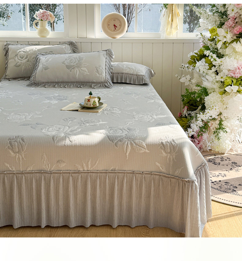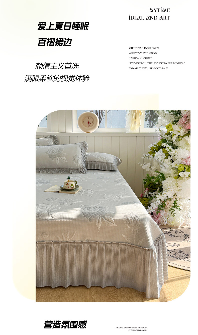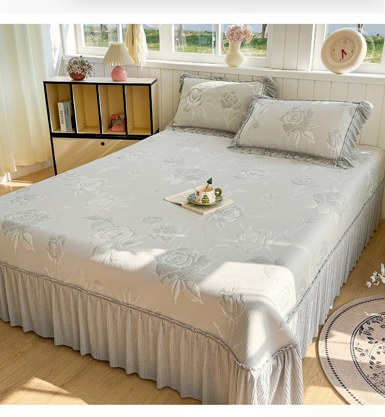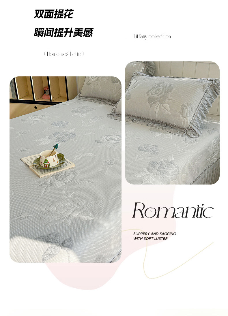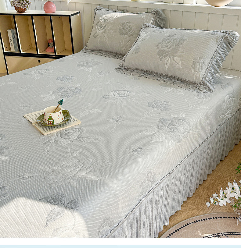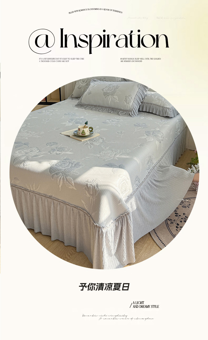 (总)恋佳居 2026新款A类PE中分子凉感丝床裙凉席,冰柔粉蔷薇,冰柔灰蔷薇,冰柔蓝蔷薇,冰沙银丝灰格,冰沙银丝蓝色,冰沙银丝绿格