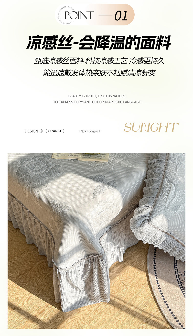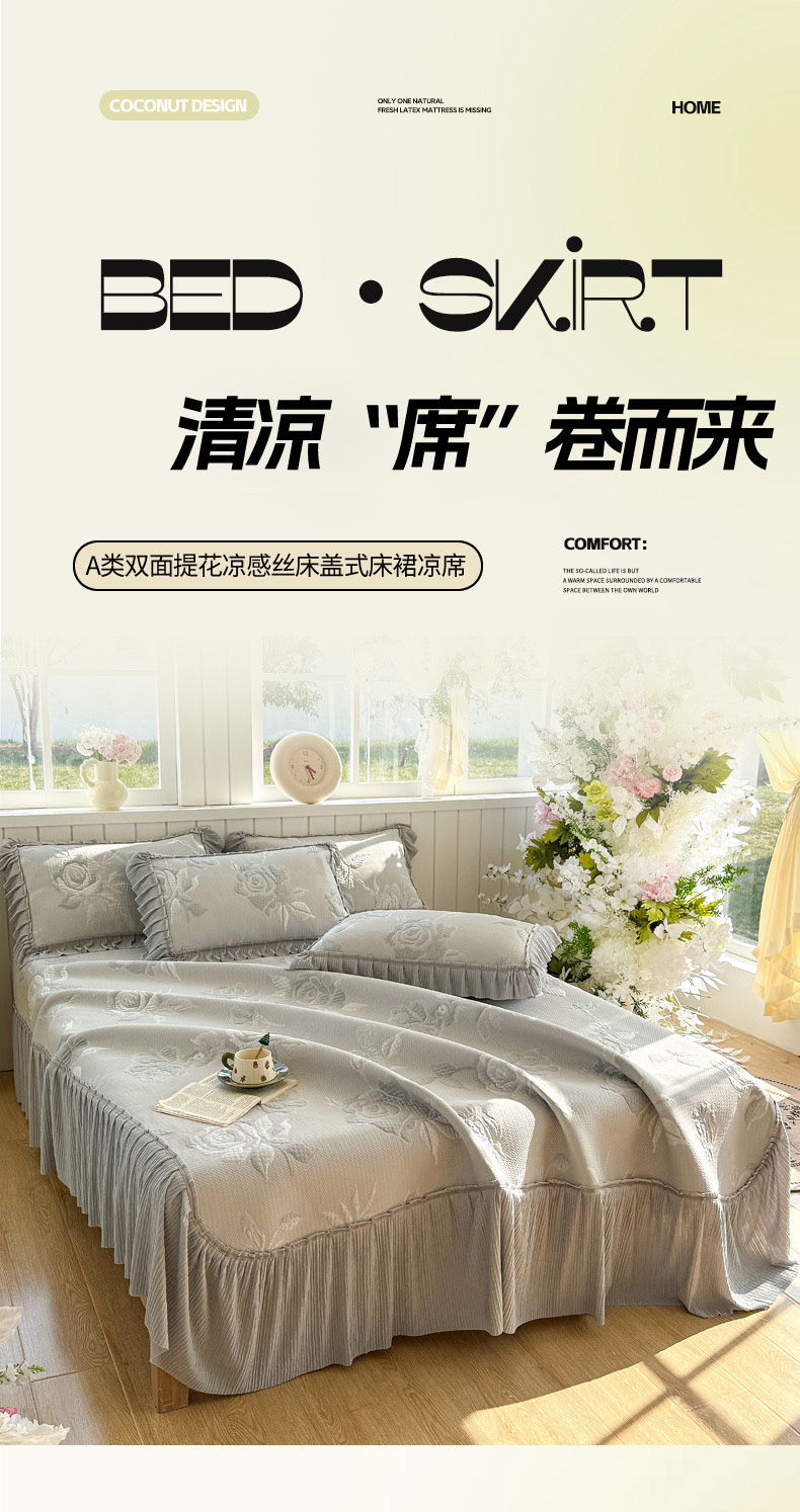商品名称:恋佳居 2026新款A类PE中分子凉感丝床裙凉席 冰柔灰蔷薇