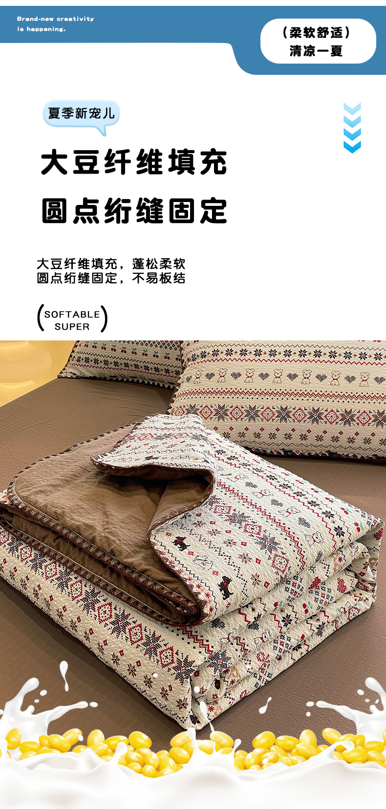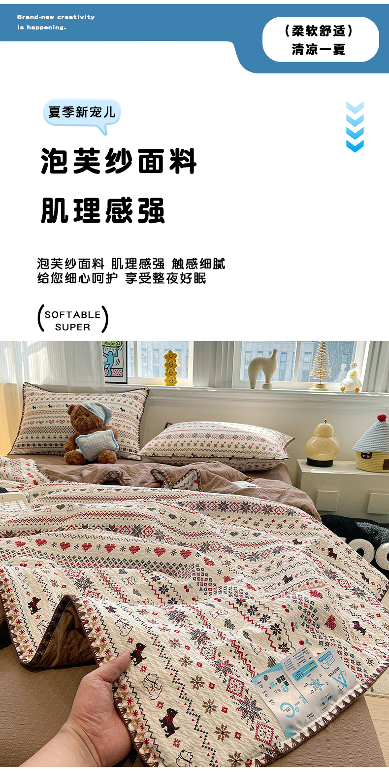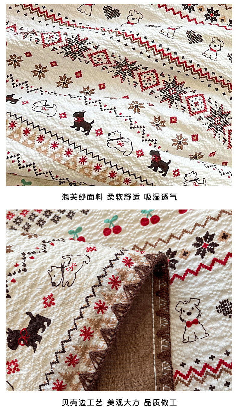 商品名称:(总)奈颜 2026新款费尔岛云柔泡芙纱A类贝壳边夏被四件套-提供买家秀