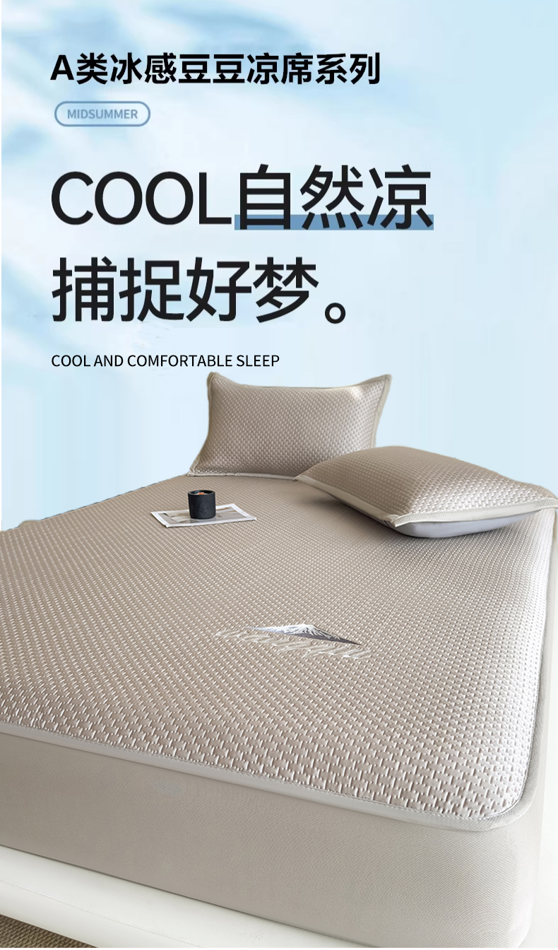 (总)人人爱家纺 2026新款冰豆豆刺绣软凉席,富士山-天蓝,富士山-粉,富士山-水蓝,富士山-抹茶绿,富士山-灰,富士山-咖