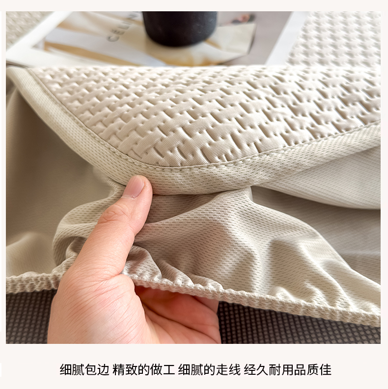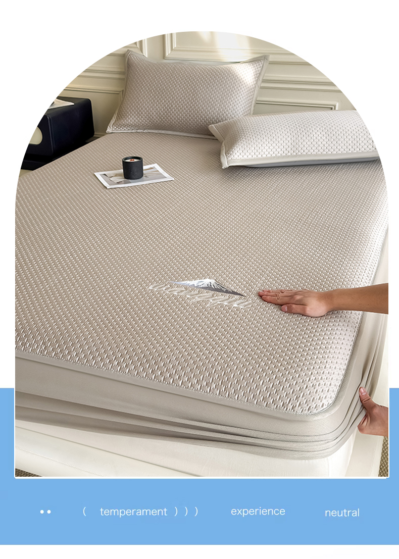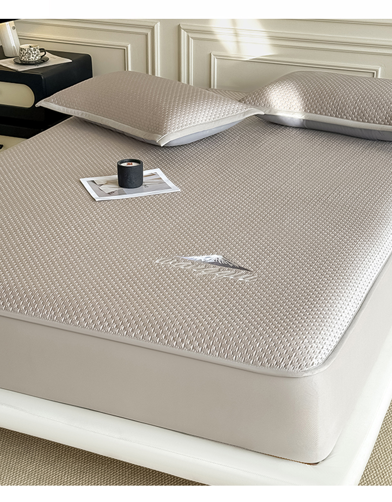 人人爱家纺 2026新款冰豆豆刺绣软凉席床笠 富士山-咖