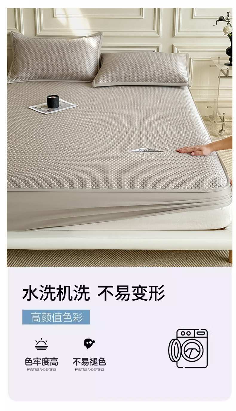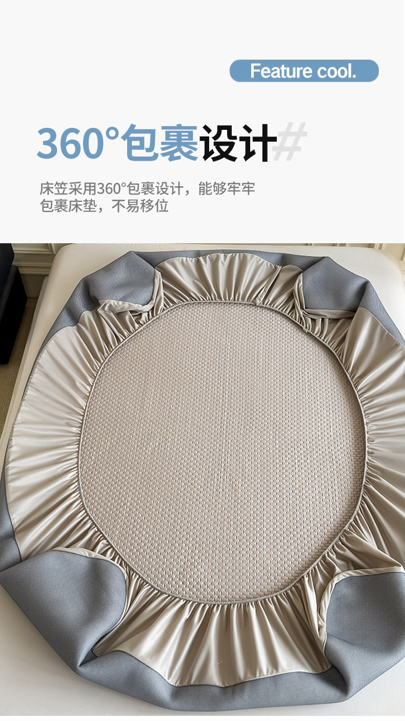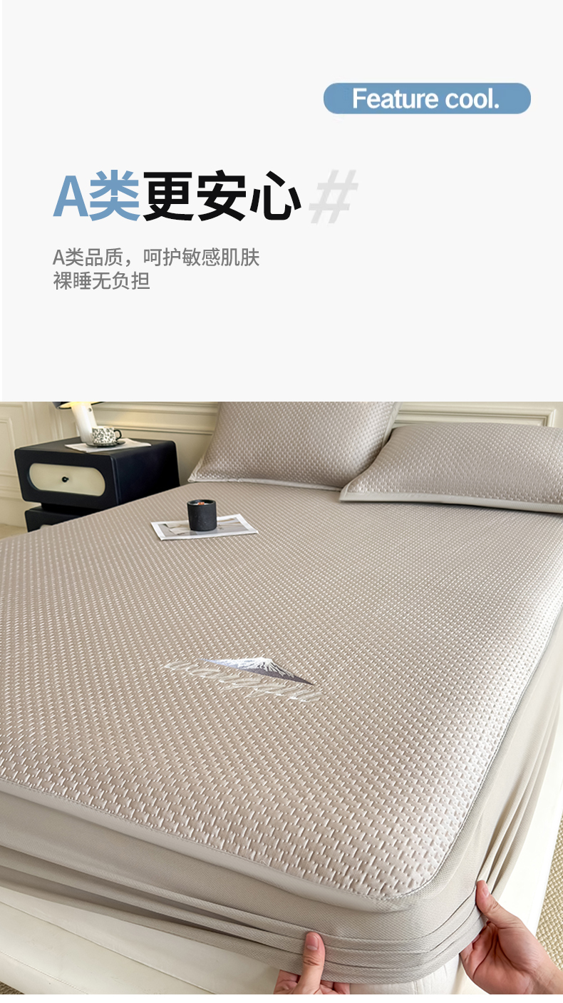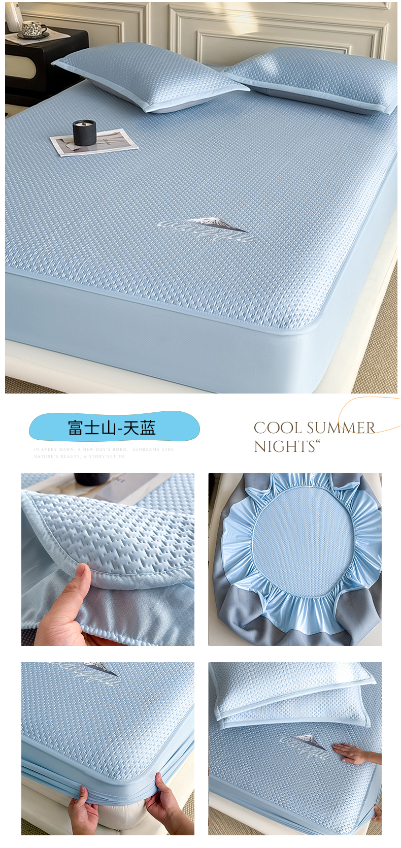 (总)人人爱家纺 2026新款冰豆豆刺绣软凉席床笠,富士山-天蓝,富士山-粉,富士山-灰,富士山-咖,富士山-抹茶绿,富士山-水蓝
