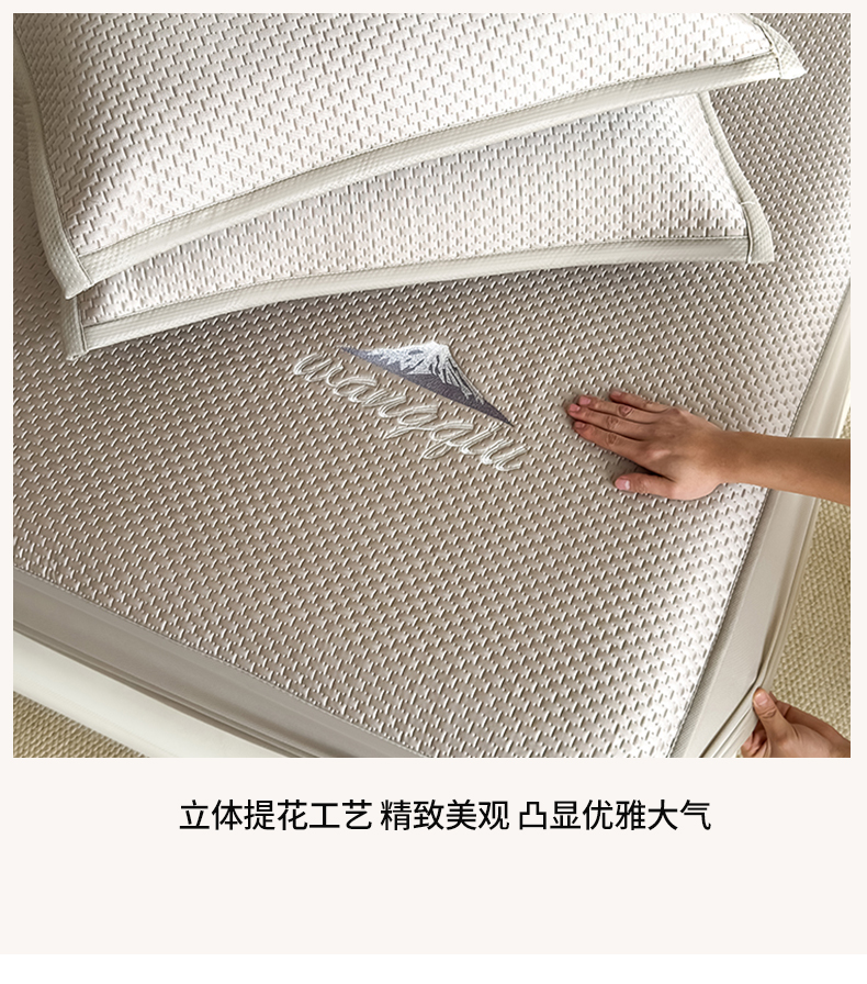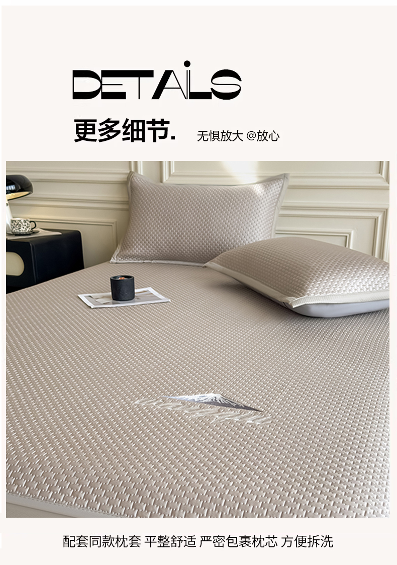 商品名称:人人爱家纺 2026新款冰豆豆刺绣软凉席床笠 富士山-咖