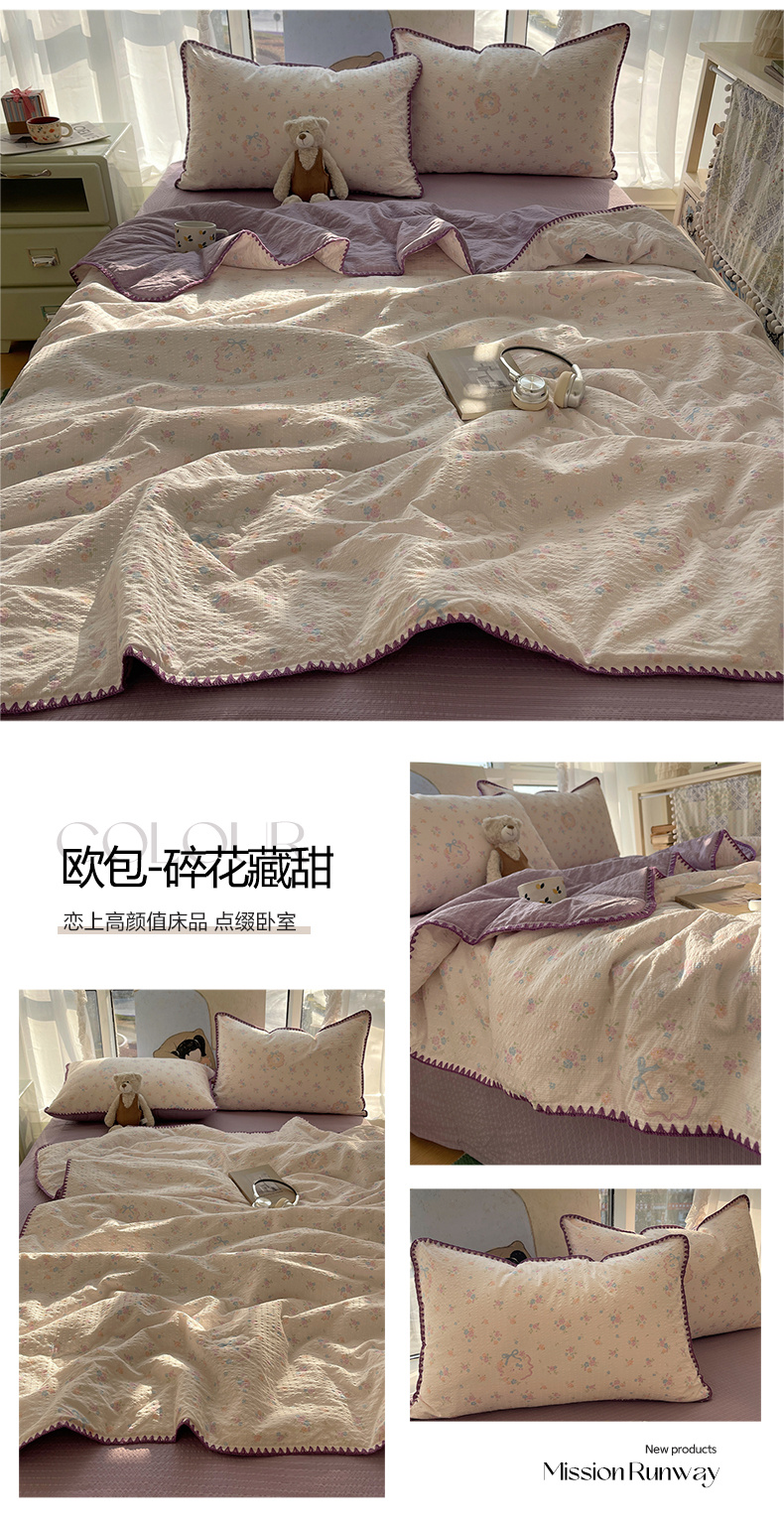 几禾 2026春夏新款泡芙纱贝壳边夏被夏凉被空调被四件套 欧包-甜卷兔兔