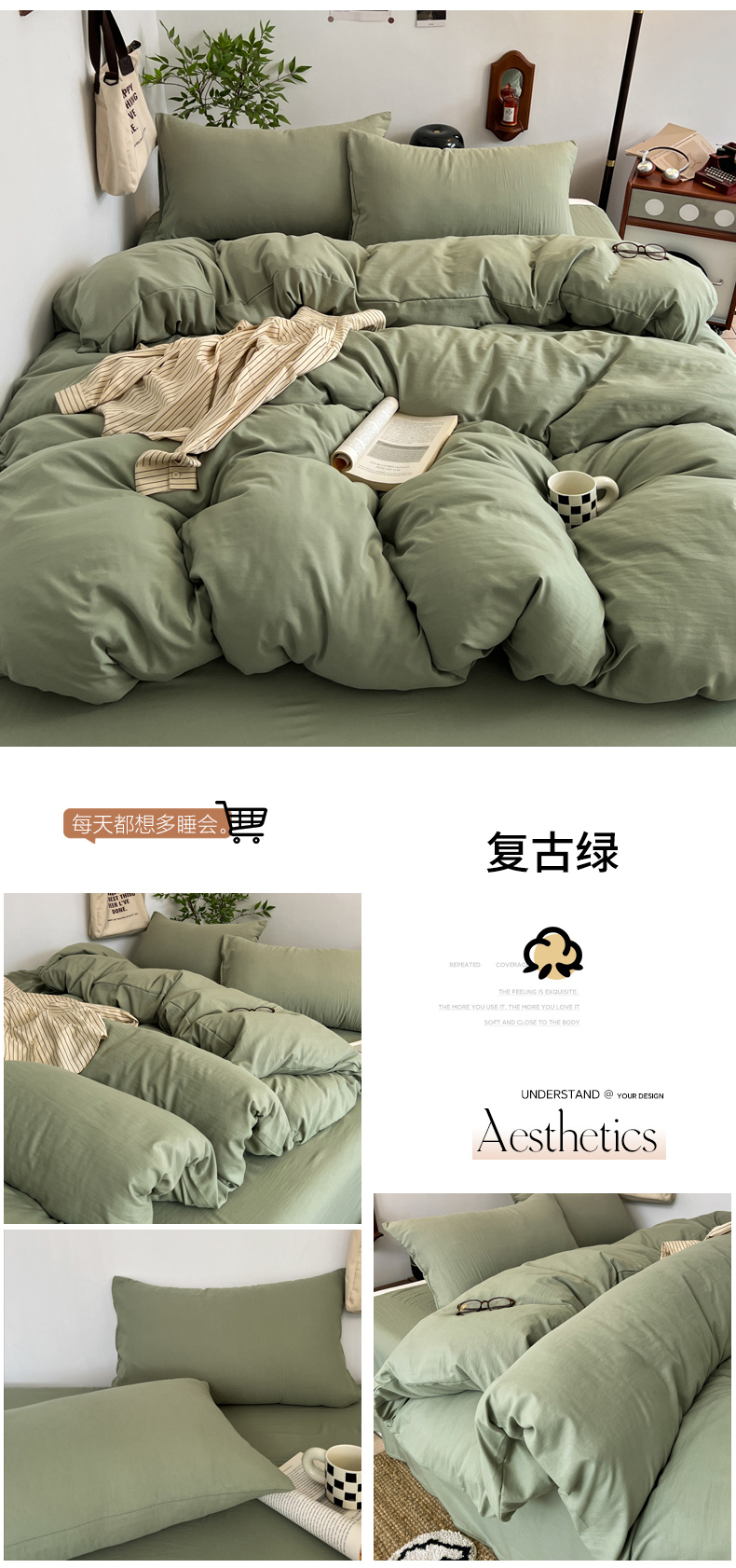 当前位置: 91家纺网 > 商品网购 > 床品套件 > 四件套 > 化纤普通四件套 > 梦嘉居 2026新款亲肤纯色AB版水洗皱皱棉四件套学生宿舍床单床笠三件套 复古绿
