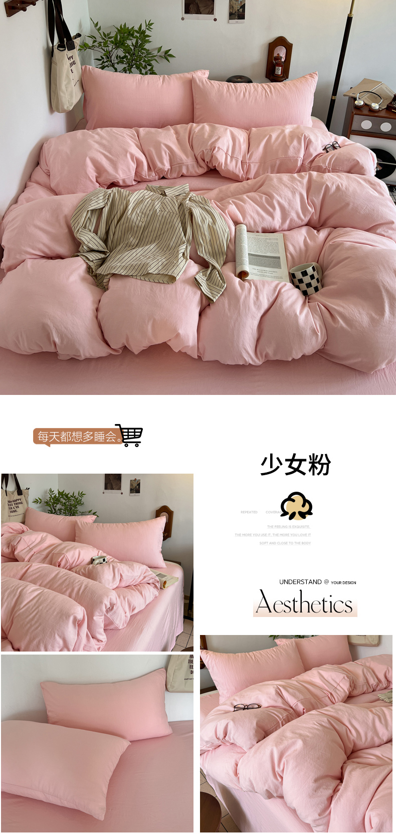 当前位置: 91家纺网 > 商品网购 > 床品套件 > 四件套 > 化纤普通四件套 > 梦嘉居 2026新款亲肤纯色AB版水洗皱皱棉四件套学生宿舍床单床笠三件套 少女粉