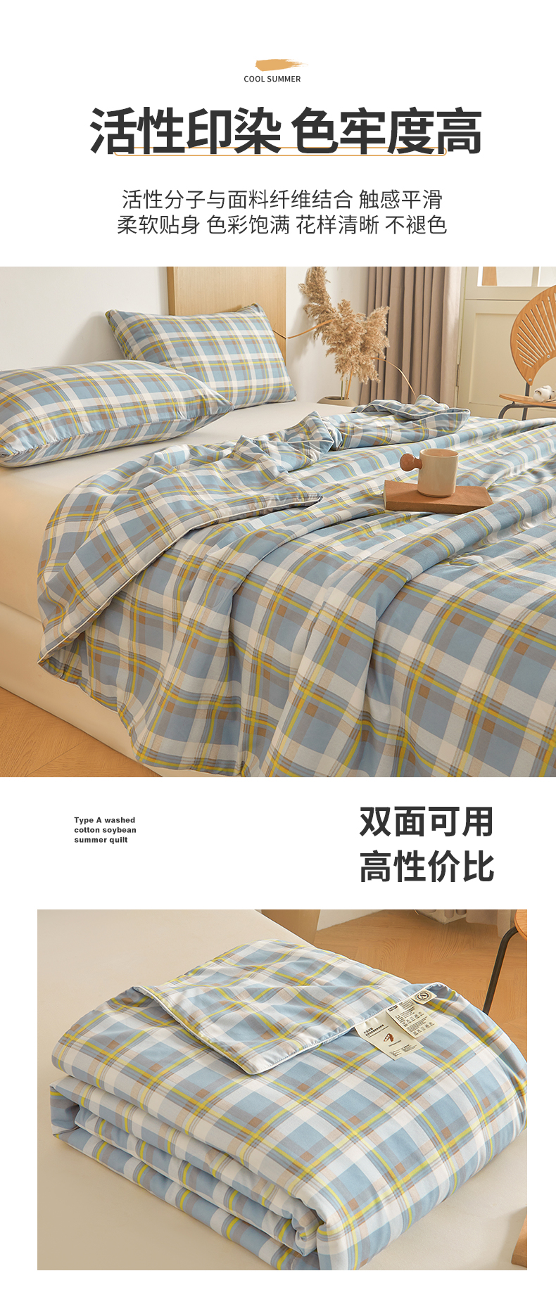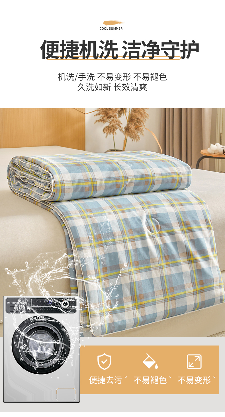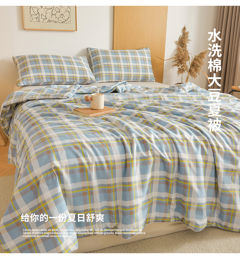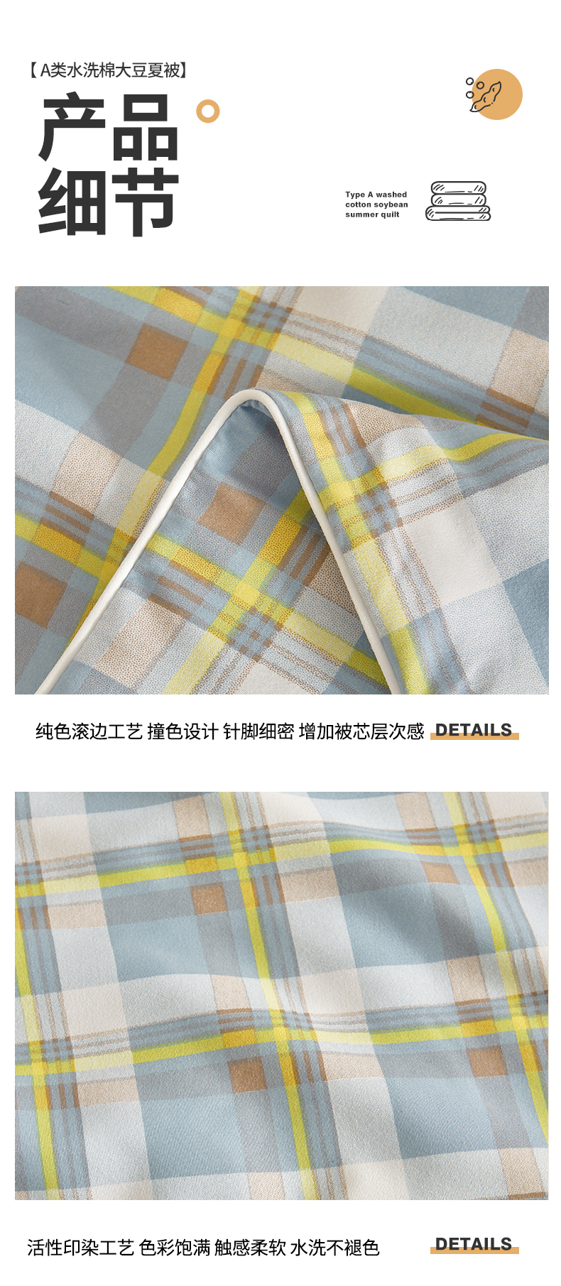 (总)景眠 2026新款水洗棉格子夏被,黄蓝中格,黄紫中格,桔紫中格,绿蓝中格,绿紫中格,沐雅格 粉,沐雅格 蓝