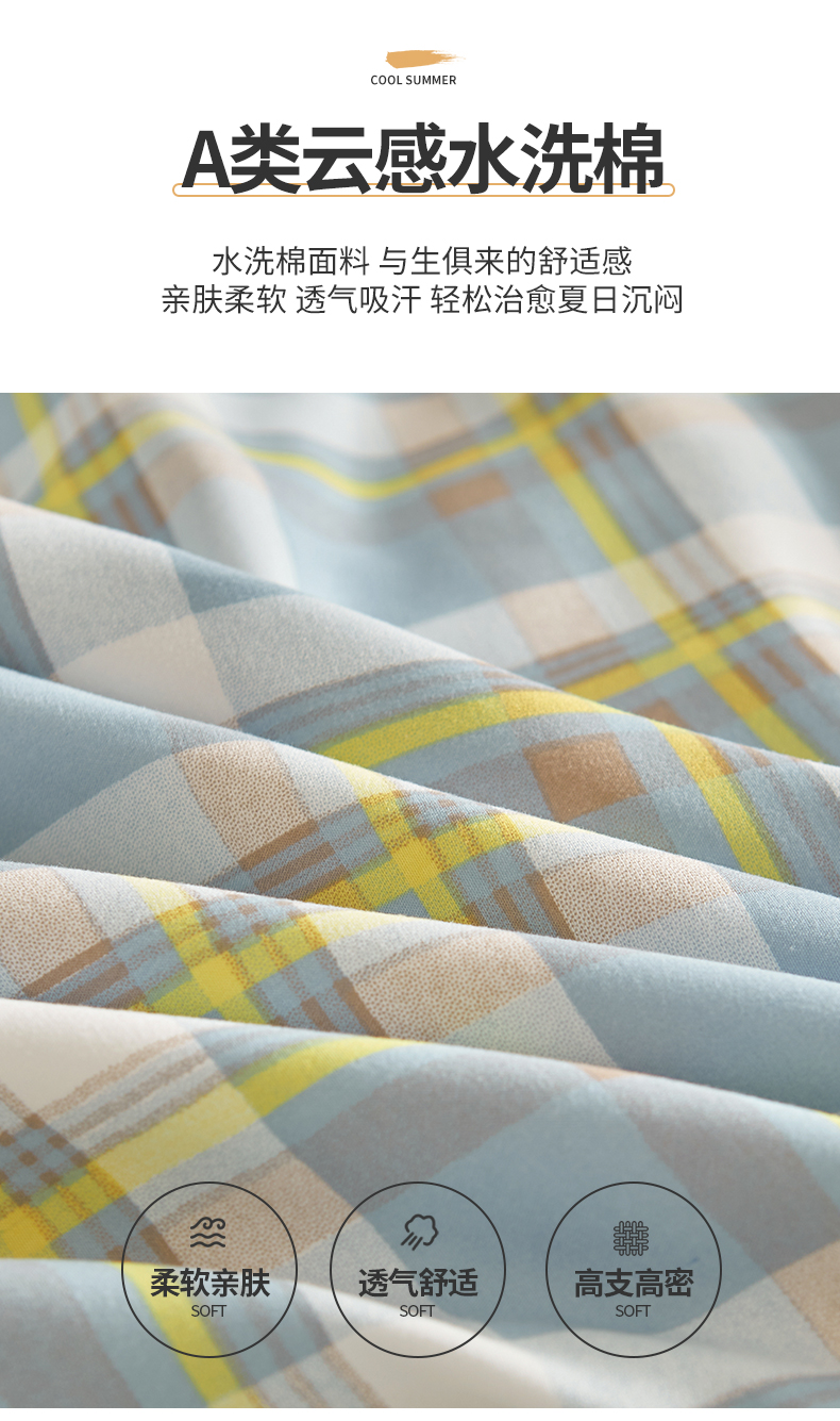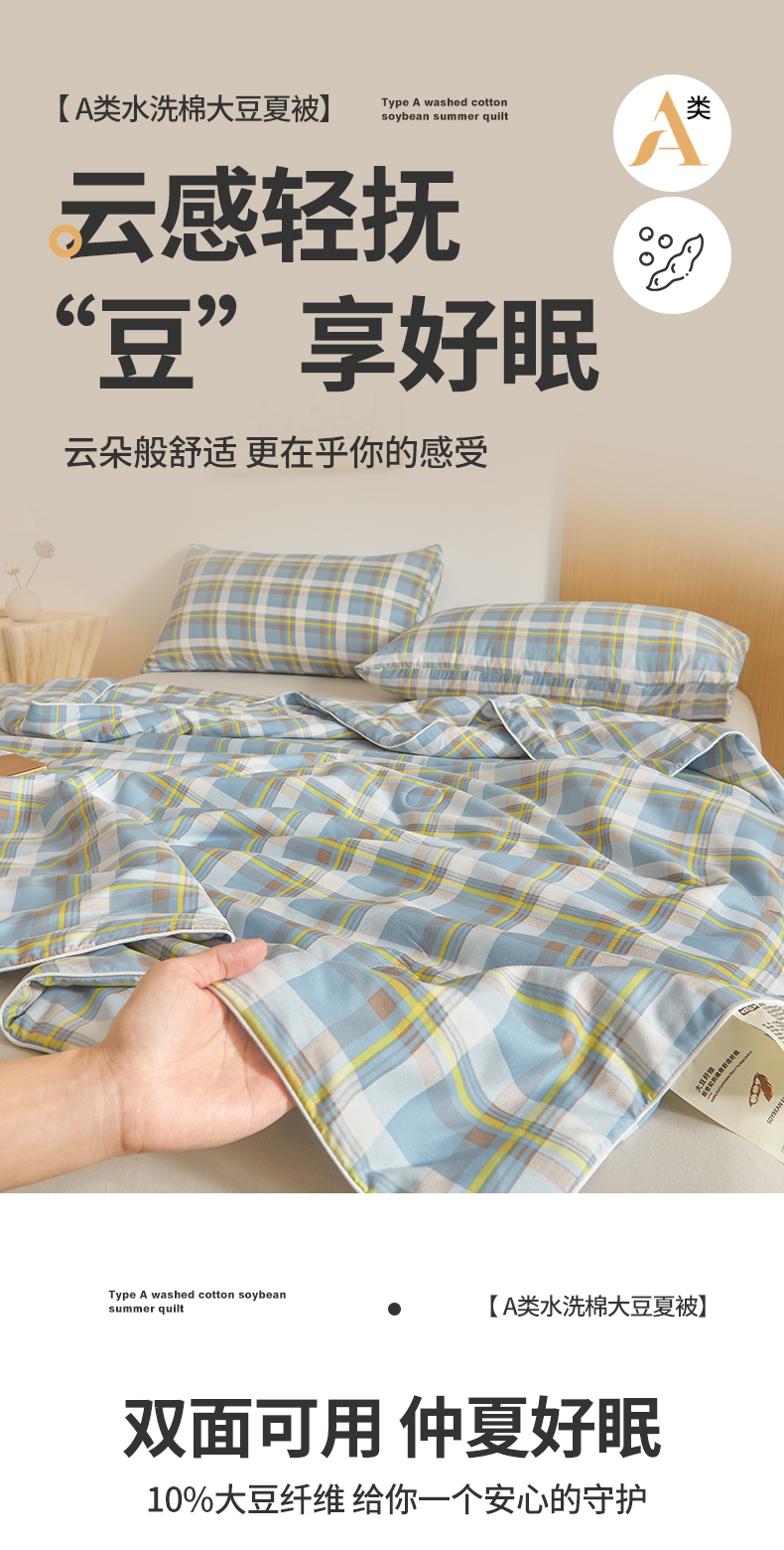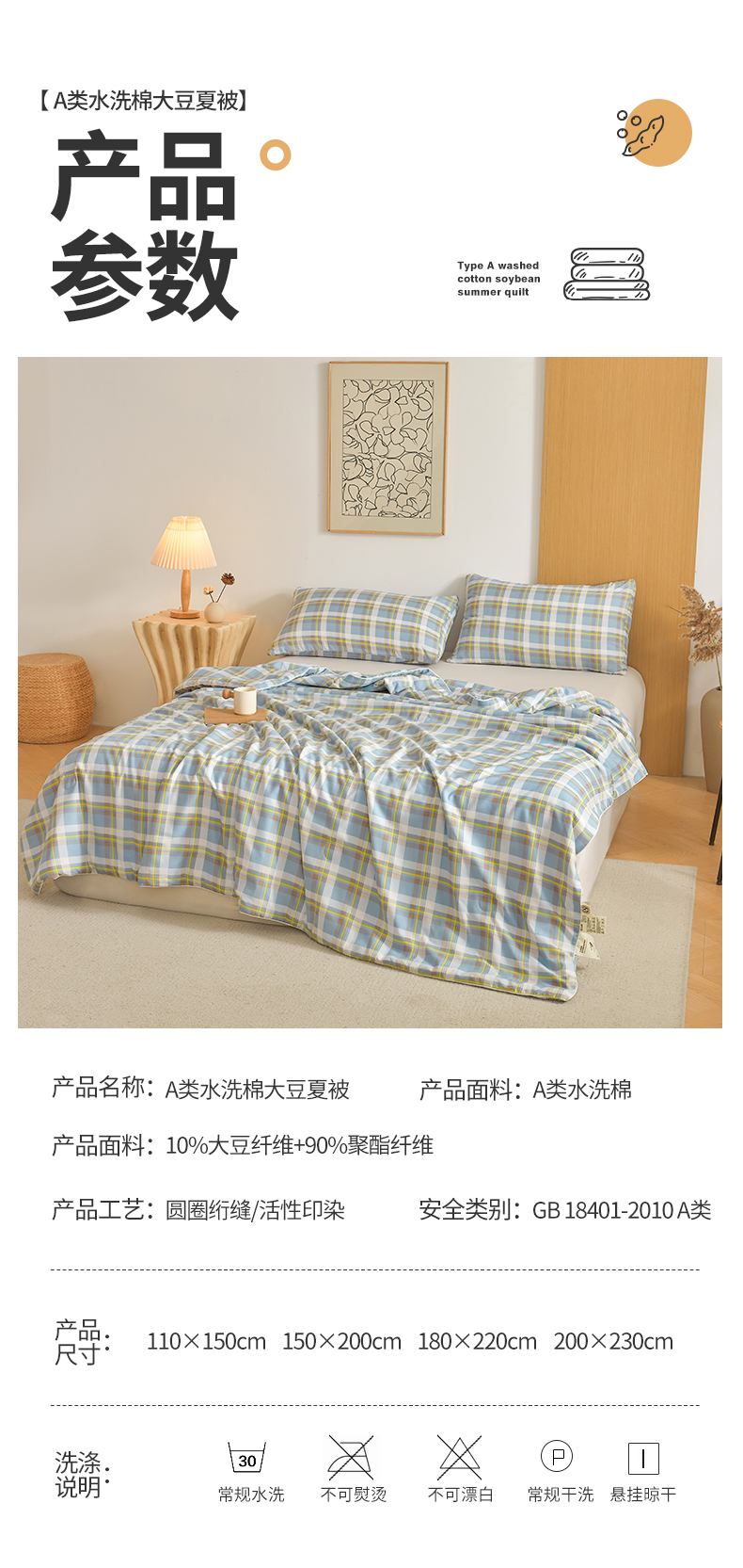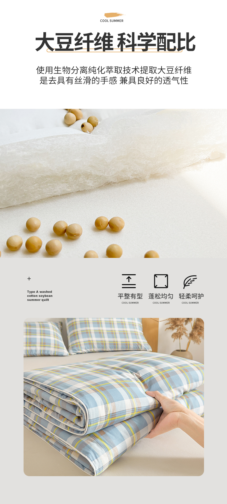 (总)景眠 2026新款水洗棉格子夏被,黄蓝中格,黄紫中格,桔紫中格,绿蓝中格,绿紫中格,沐雅格 粉,沐雅格 蓝