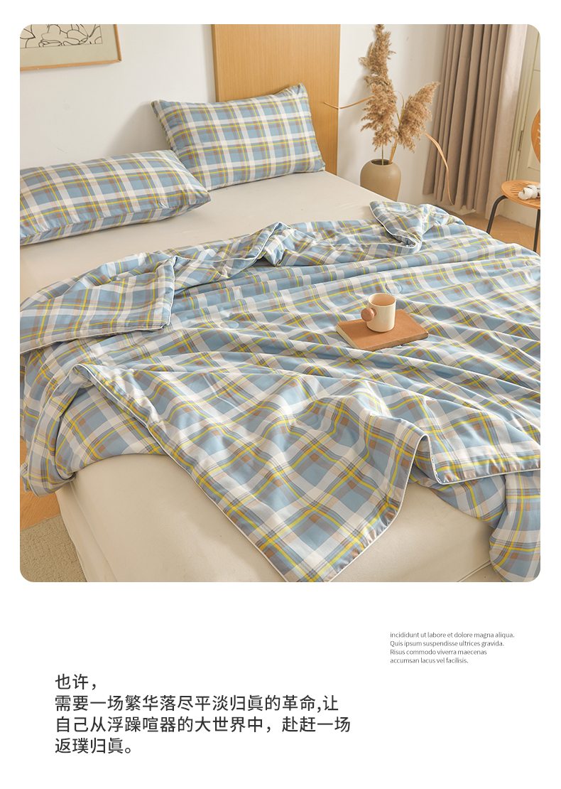商品名称:景眠 2026新款水洗棉格子夏被 沐雅格 蓝