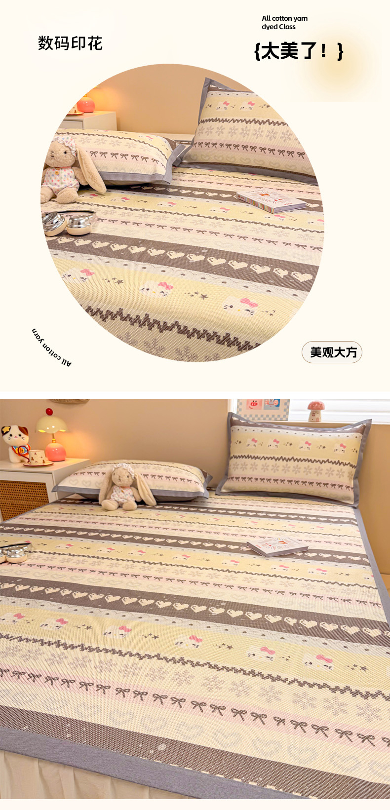 (总)沐慕 2026新款小清新凉感丝乳胶凉席三件套,爱心小兔,花花粉兔,萌萌鸭,萌宠礼物,豹纹小兔,萝莉猫,腊肠狗,粉格帽宠,三小只,森系兔,碎花小猫,糖果甜梦园,天使星星人,晚安拼格猫,樱桃萌猫,郁金香,云朵小熊