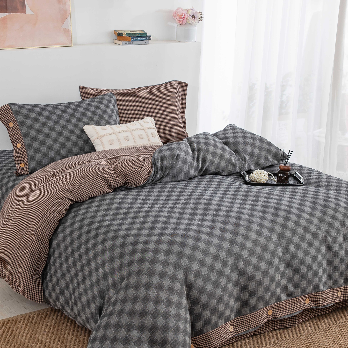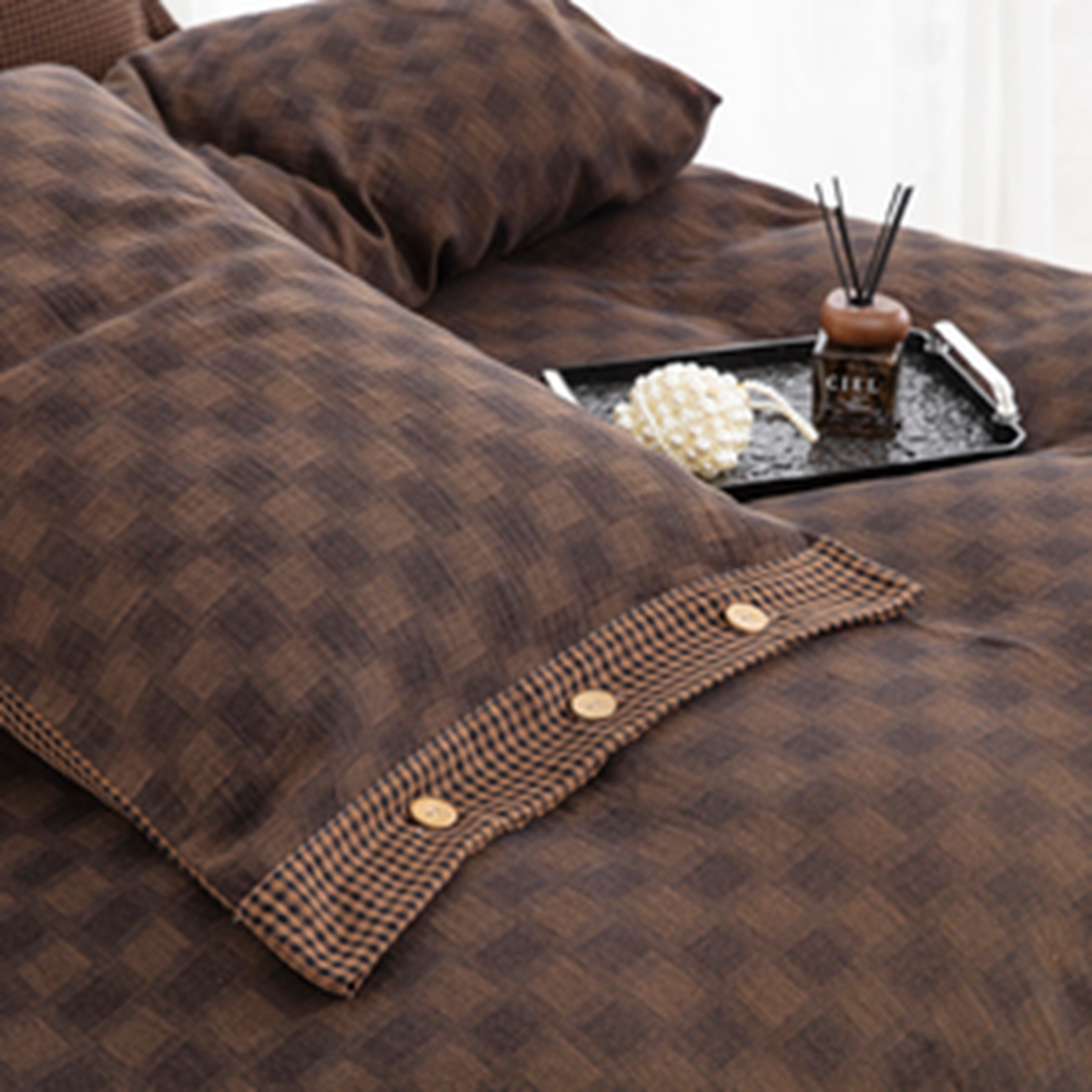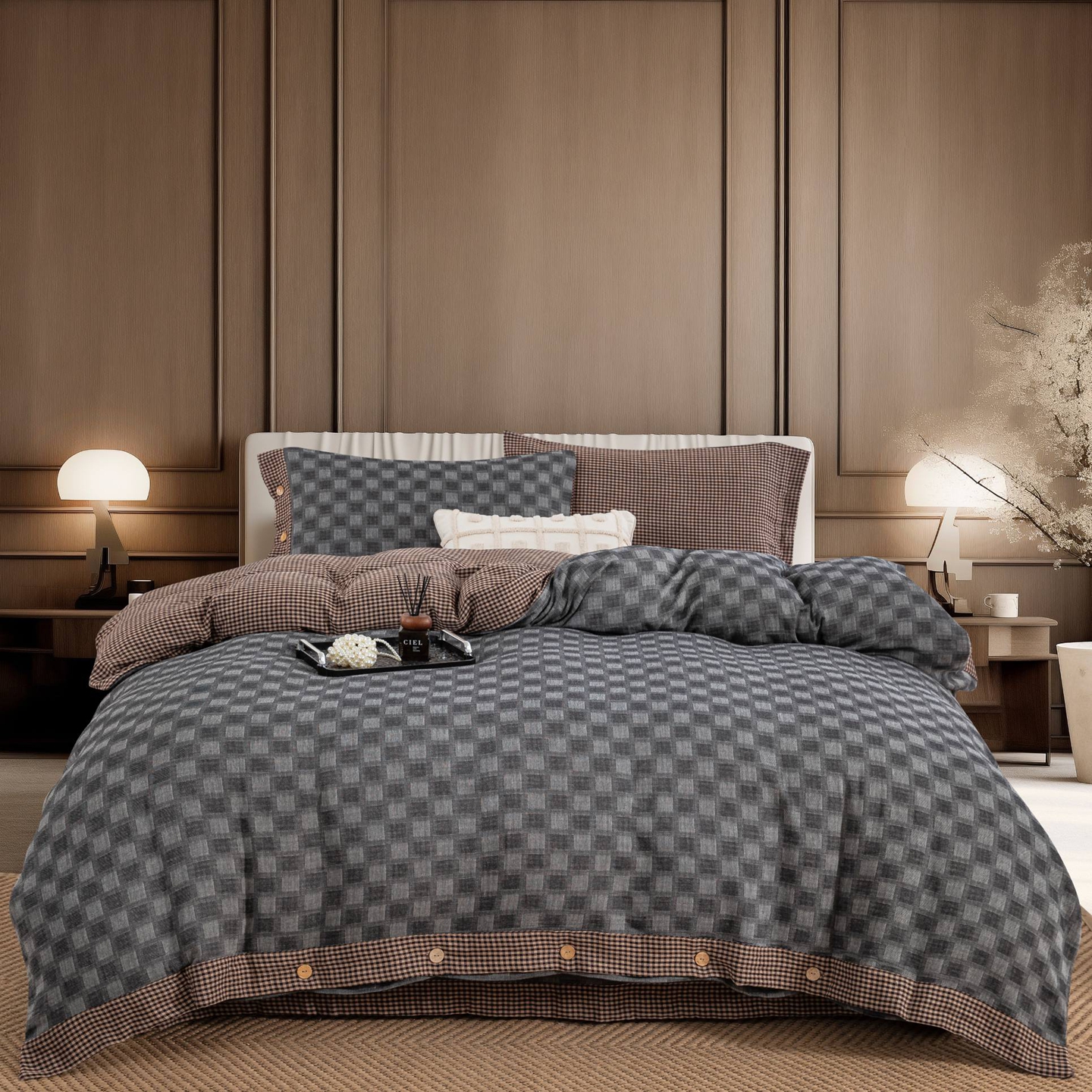 (总)仰望棉麻双层纱供应链 2026新款全棉纯棉色织水洗棉床盖三四件套,艾格-咖+小密格-灰,艾格-深灰+小密格-粉,艾维斯-粉+小密格-粉,艾维斯-咖+小密格-咖,艾维斯-蓝+小密格-粉,达乐-蓝+小清香-粉,格律-粉+小密格-粉,格律-灰+小密格-粉,格律-绿+小密格-咖,米亚-粉+小密格-灰,米亚-灰+可爱多-蓝,米亚-绿+小密格-绿