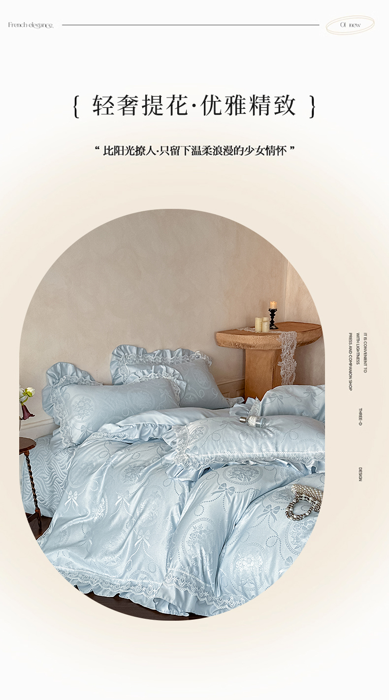 当前位置: 91家纺网 > 商品网购 > 床品套件 > 四件套 > 其它四件套 > 首尔家纺 2026新款花边蕾丝提花水洗真丝天丝四件套 秘境-天蓝