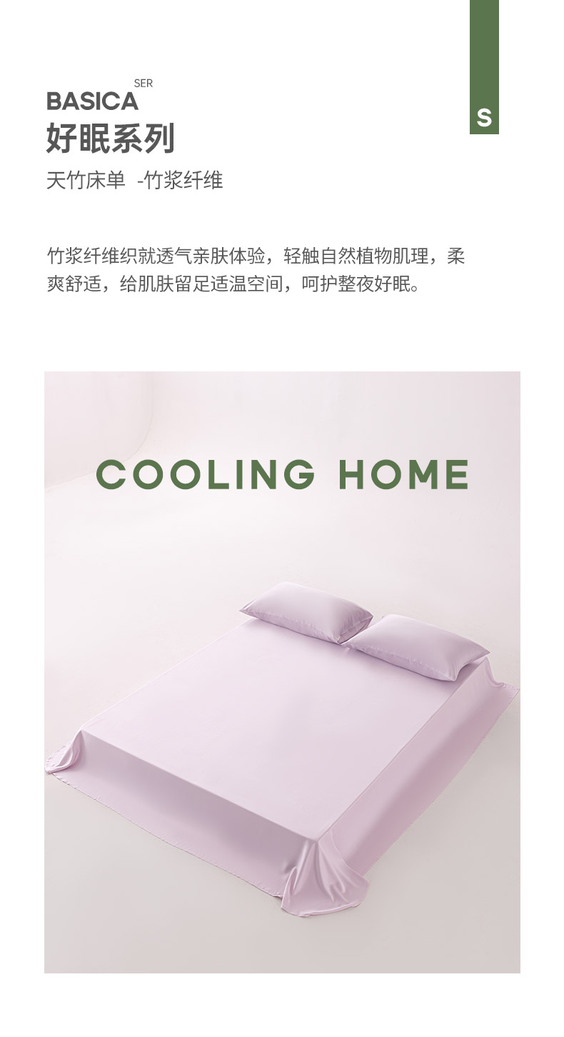 (总)轩和家居 2026新款竹浆纤维纯色单品床单系列,淡绿,淡紫,奶咖,奇异莓,软玉,天蓝,甜紫,椰灰