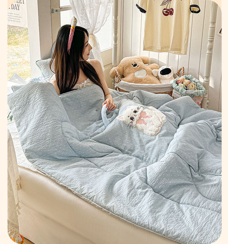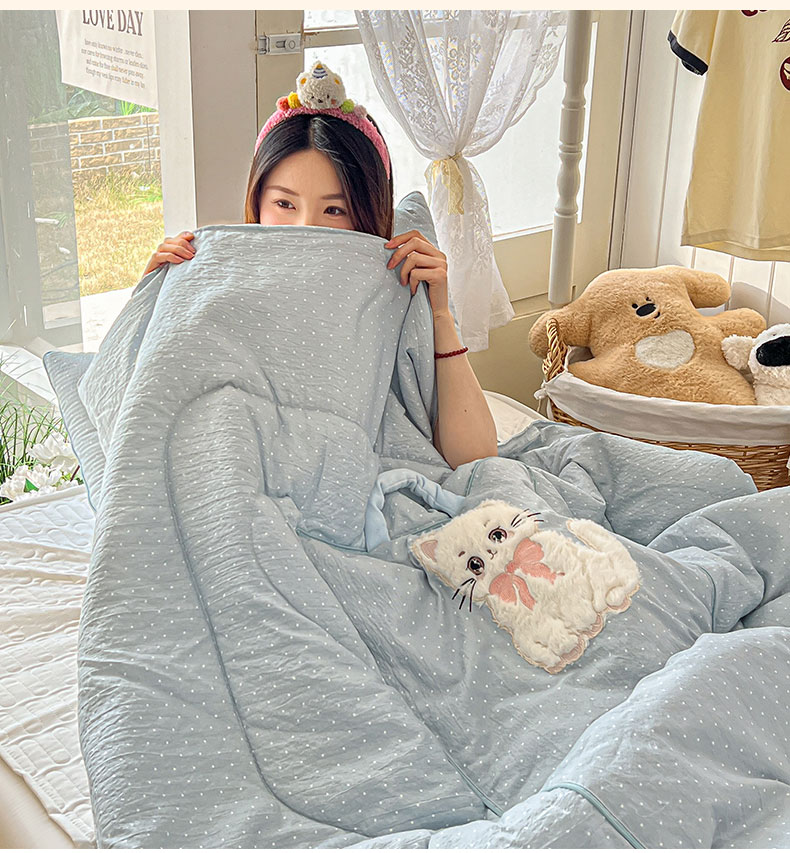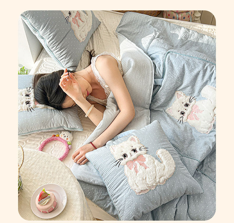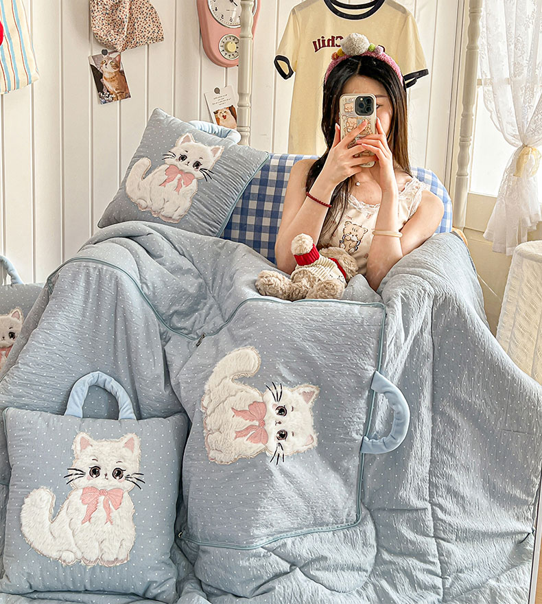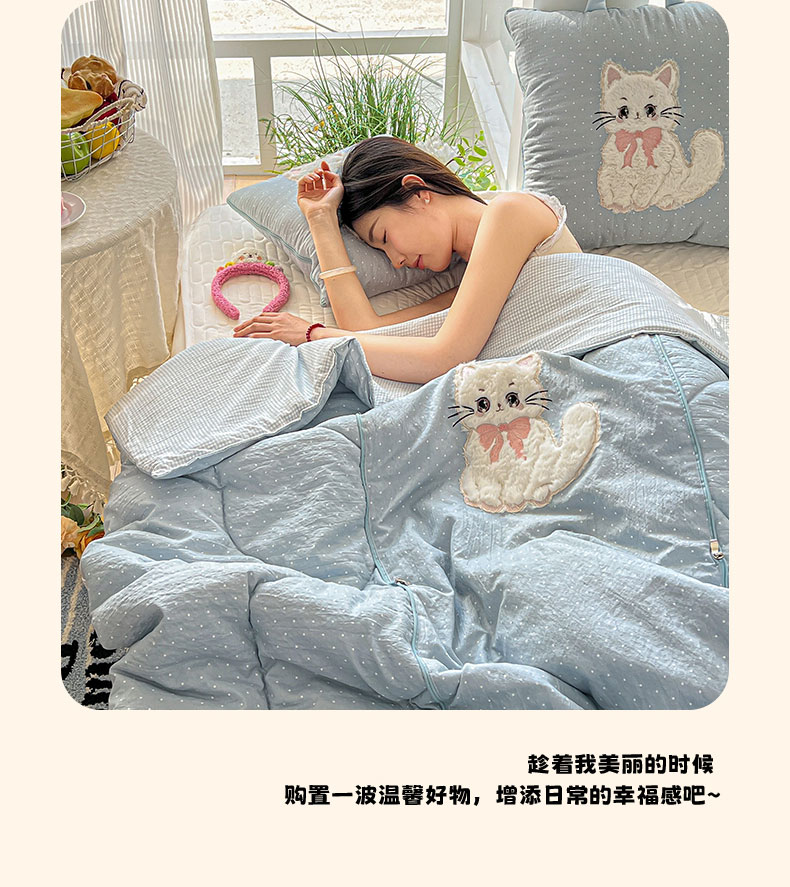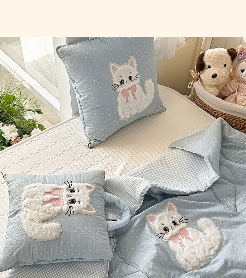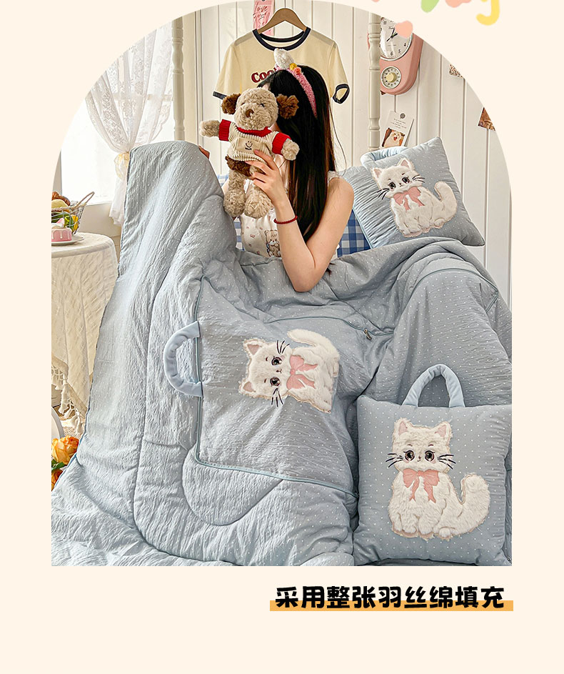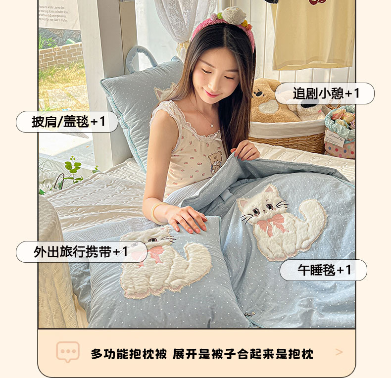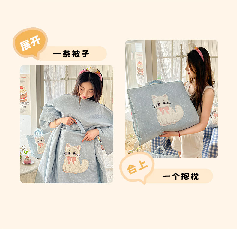 番茄+ 2026新款ins风猫咪抱枕被 奶芙猫-波点蓝