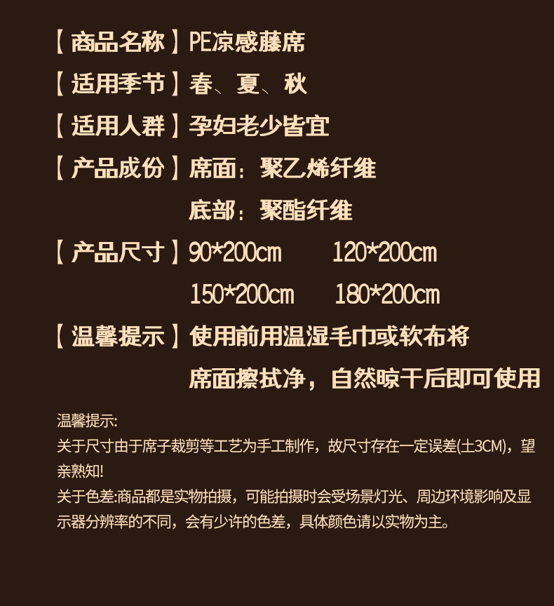 当前位置: 91家纺网 > 商品网购 > 床上用品 > 凉席 > 藤席 > 宜派家纺 2026新款凉感PE雪山藤席 PE雪山藤-黄