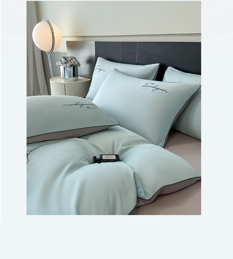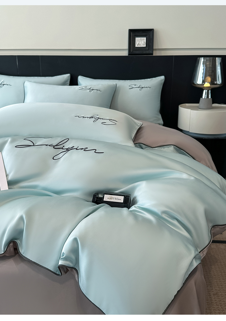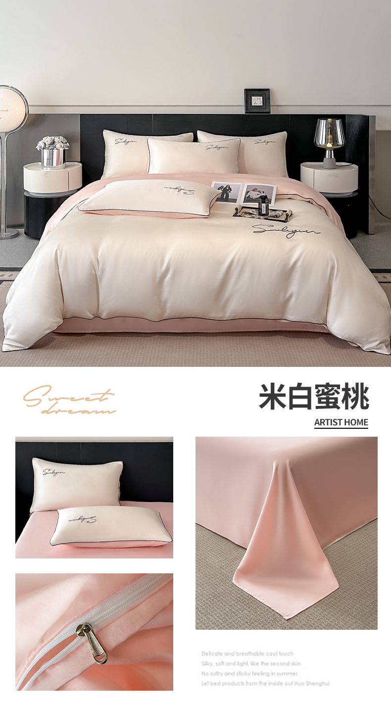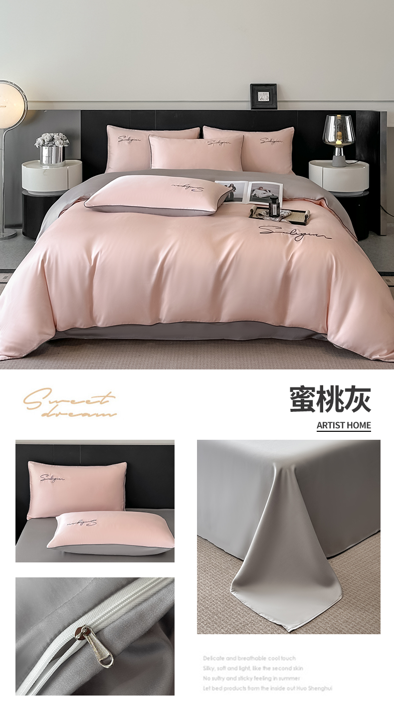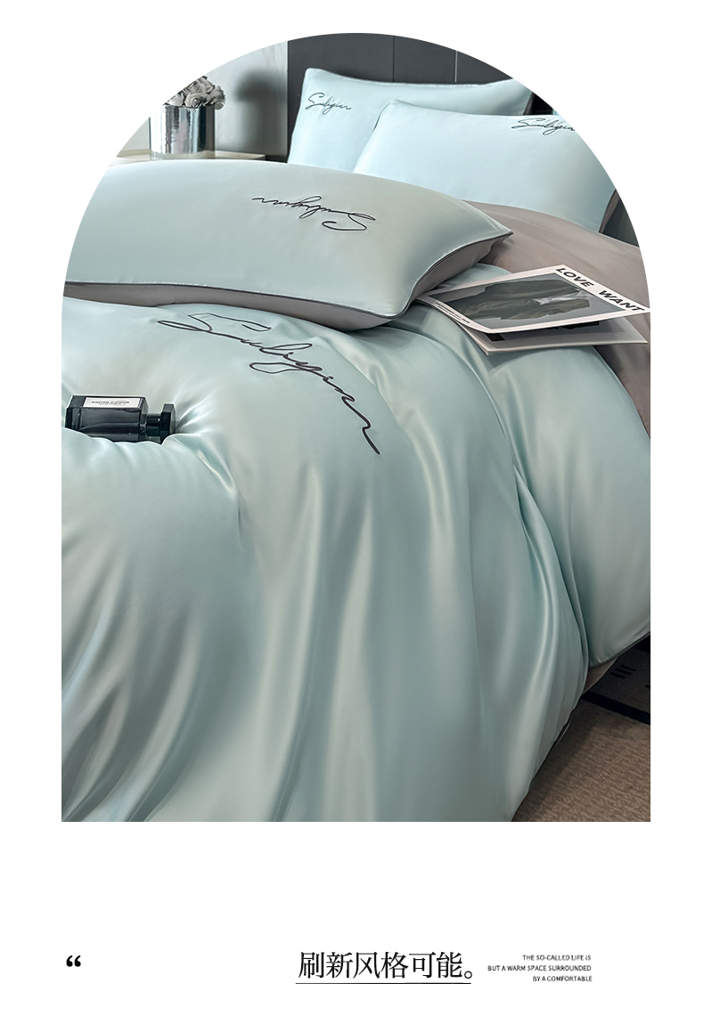 当前位置: 91家纺网 > 商品网购 > 床品套件 > 四件套 > 其它四件套 > 美澳家纺 2026新款凉感水洗冰丝真丝刺绣双拼单被套四件套 卡其灰
