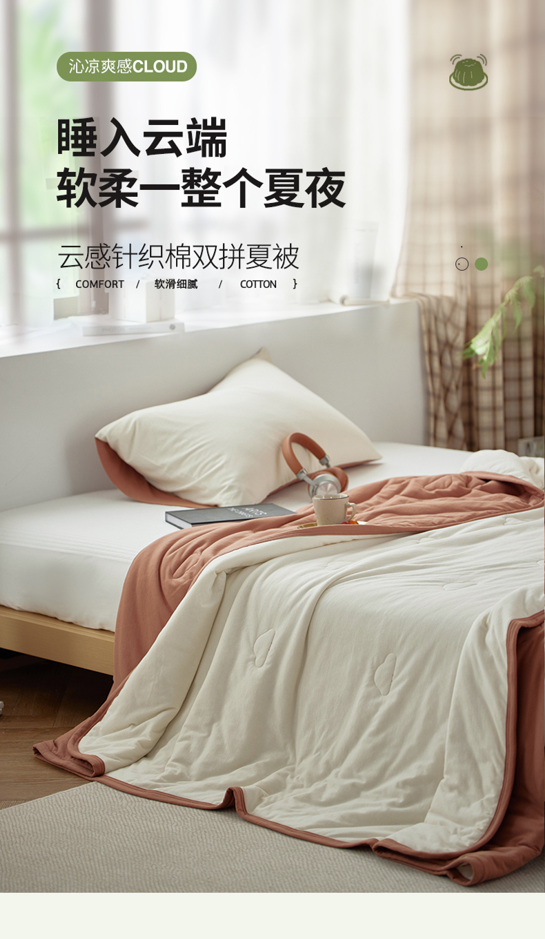 当前位置: 91家纺网 > 商品网购 > 被子 > 夏被 > 风向标家纺 2026新款全棉云感针织棉双拼夏被夏凉被空调被 椰慕双拼