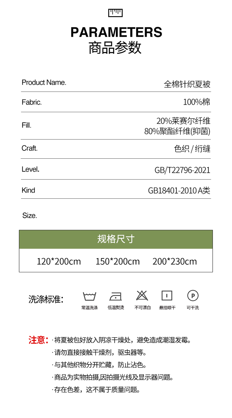 • 适用季节: 空调被/夏凉被