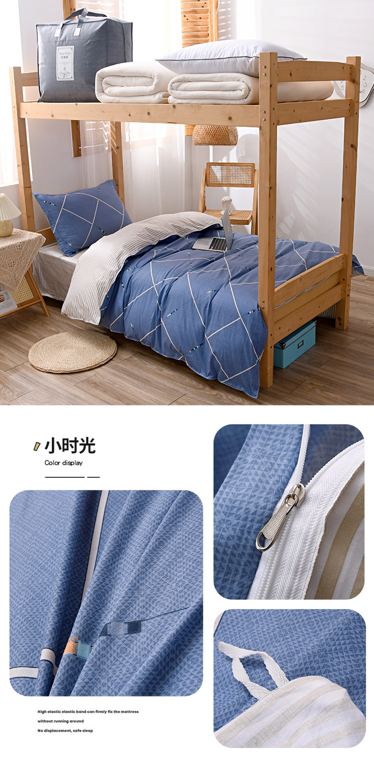 当前位置: 91家纺网 > 商品网购 > 床品套件 > 三件套 > 茗婷家纺 2026新款纯棉学生宿舍上下铺床单款床笠款三件套四季款 海盐蓝