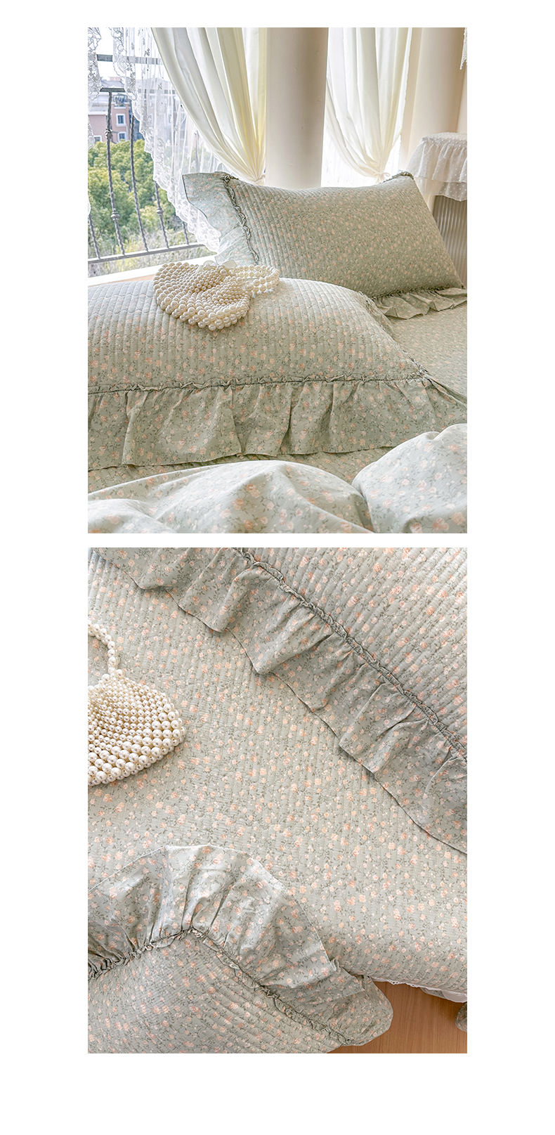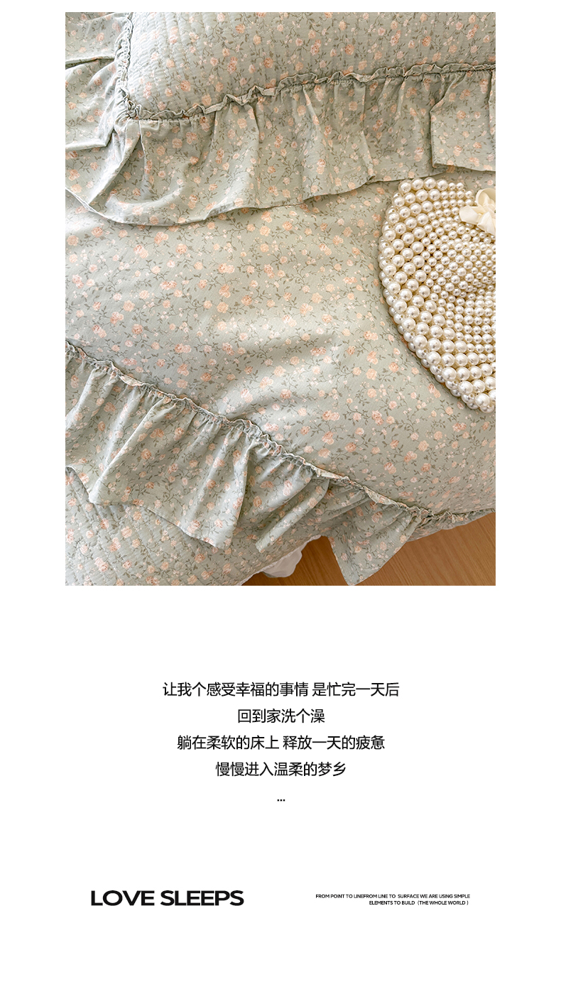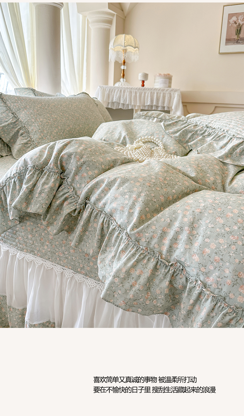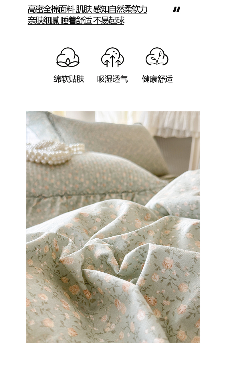 商品名称:瑞宝 2026新款全棉纯棉床盖小碎花玻璃纱四件套 绿茵