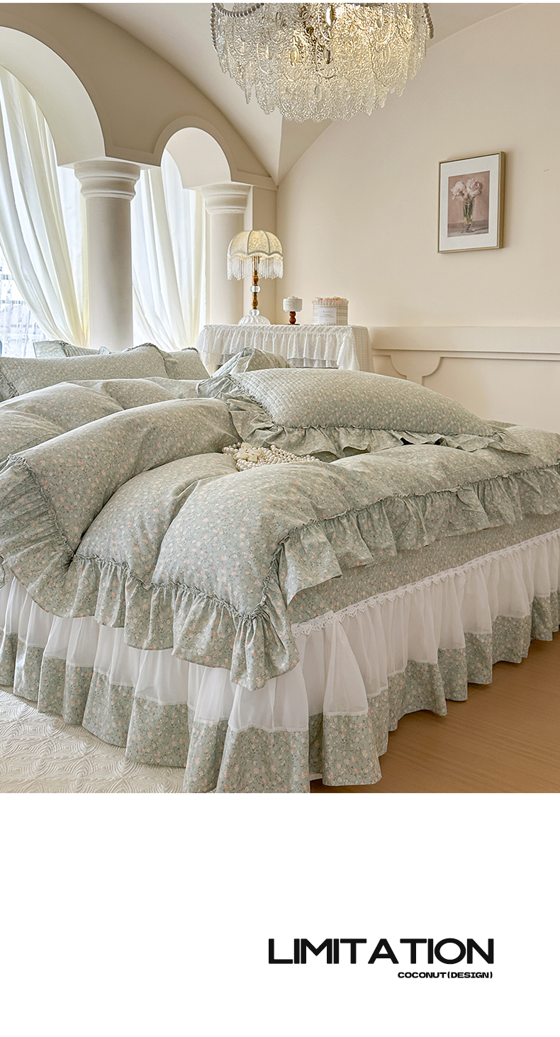 瑞宝 2026新款全棉纯棉床盖小碎花玻璃纱四件套 绿茵