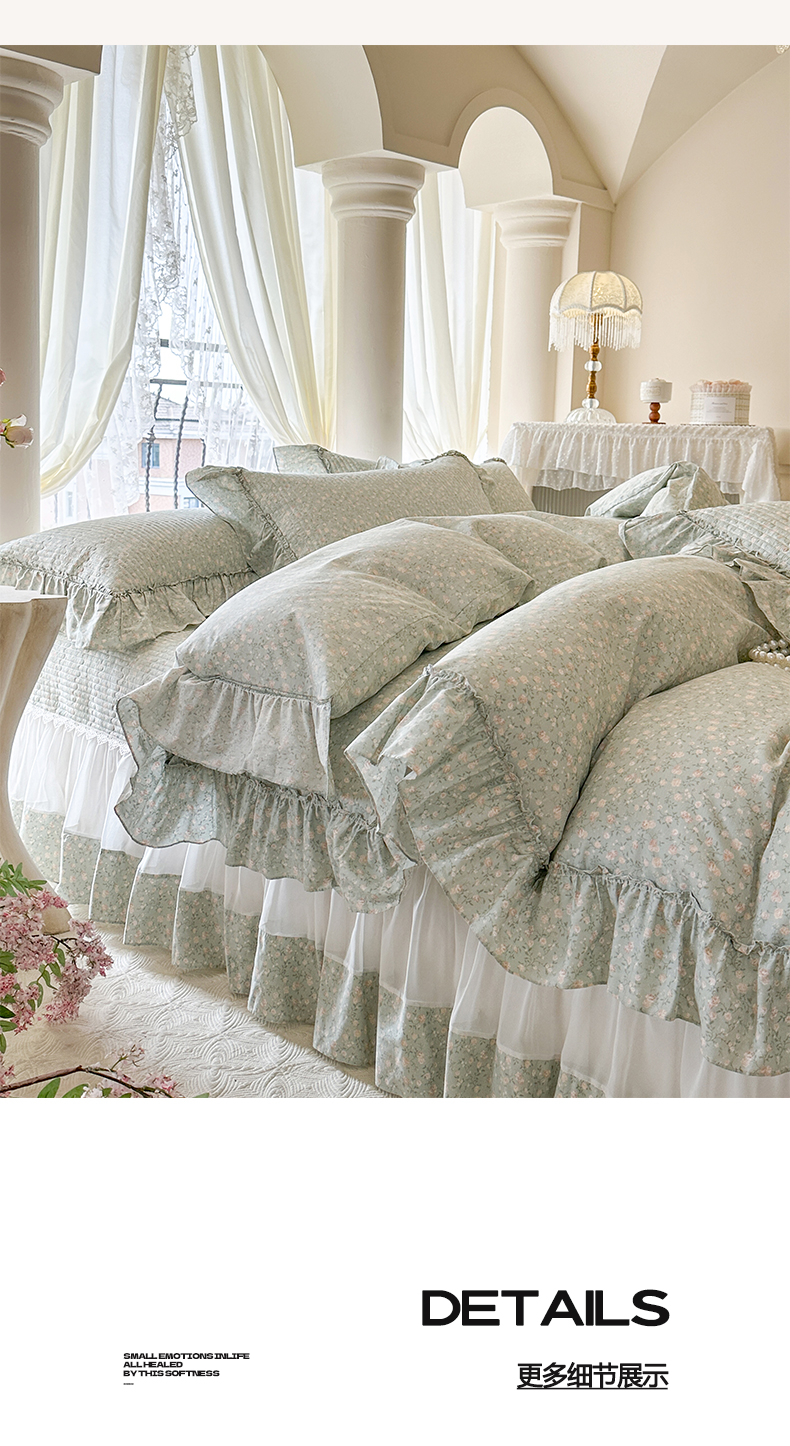 (总)瑞宝 2026新款春款全棉印花床裙四件套【控价265起 各平台严格控价:所有尺寸在扣除店铺优惠券后利润不得少于80(包含活动期)】,春田绿,花蕾紫,花时,花悦美,拉菲庄园,漫步花庭,美林意境,那年花开