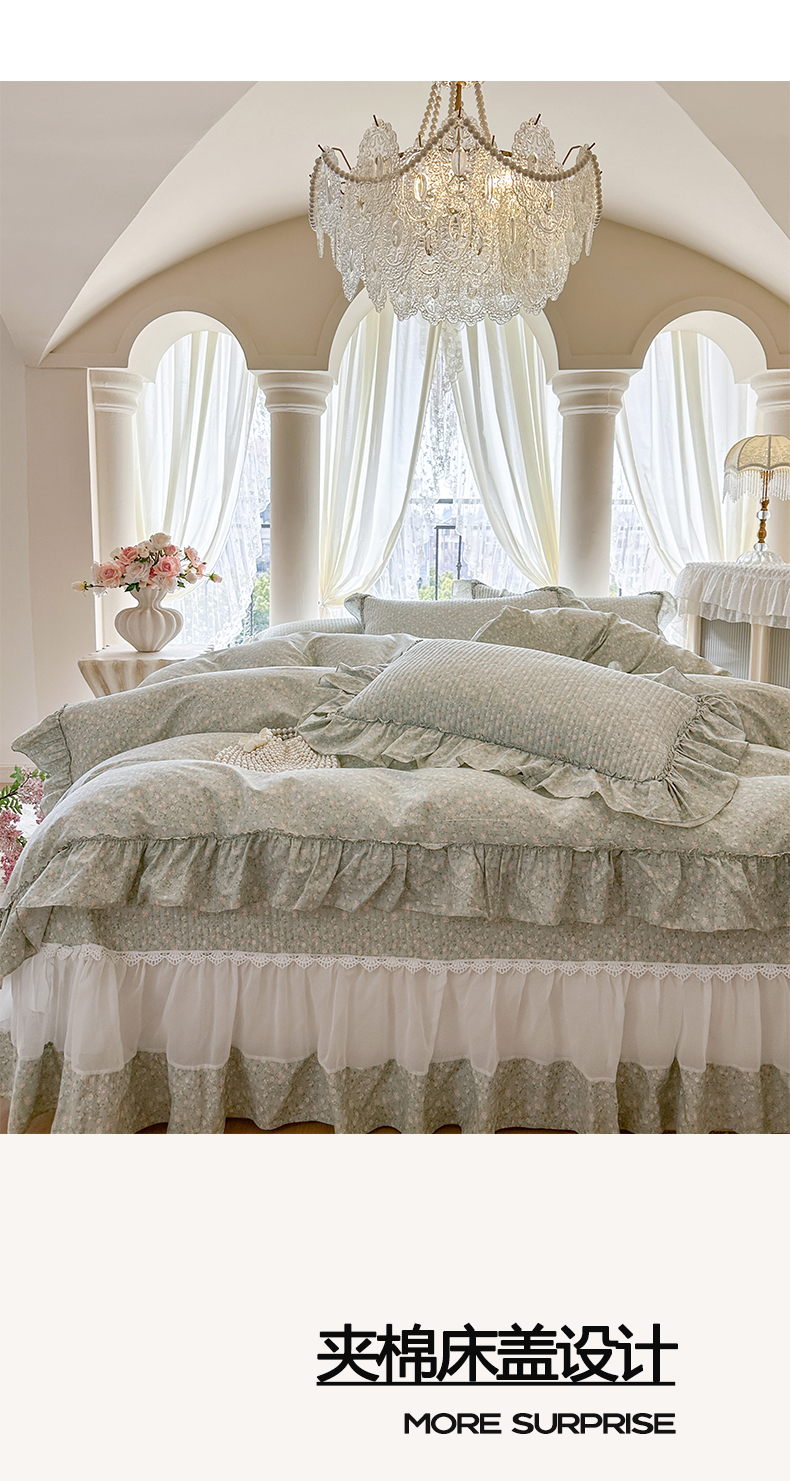 (总)瑞宝 2025新款法式花边全棉贡缎提花床裙款四件套-梦之语(控价265起),梦之语-蜜粉,梦之语-奶油白,梦之语-青柠绿,梦之语-香芋紫