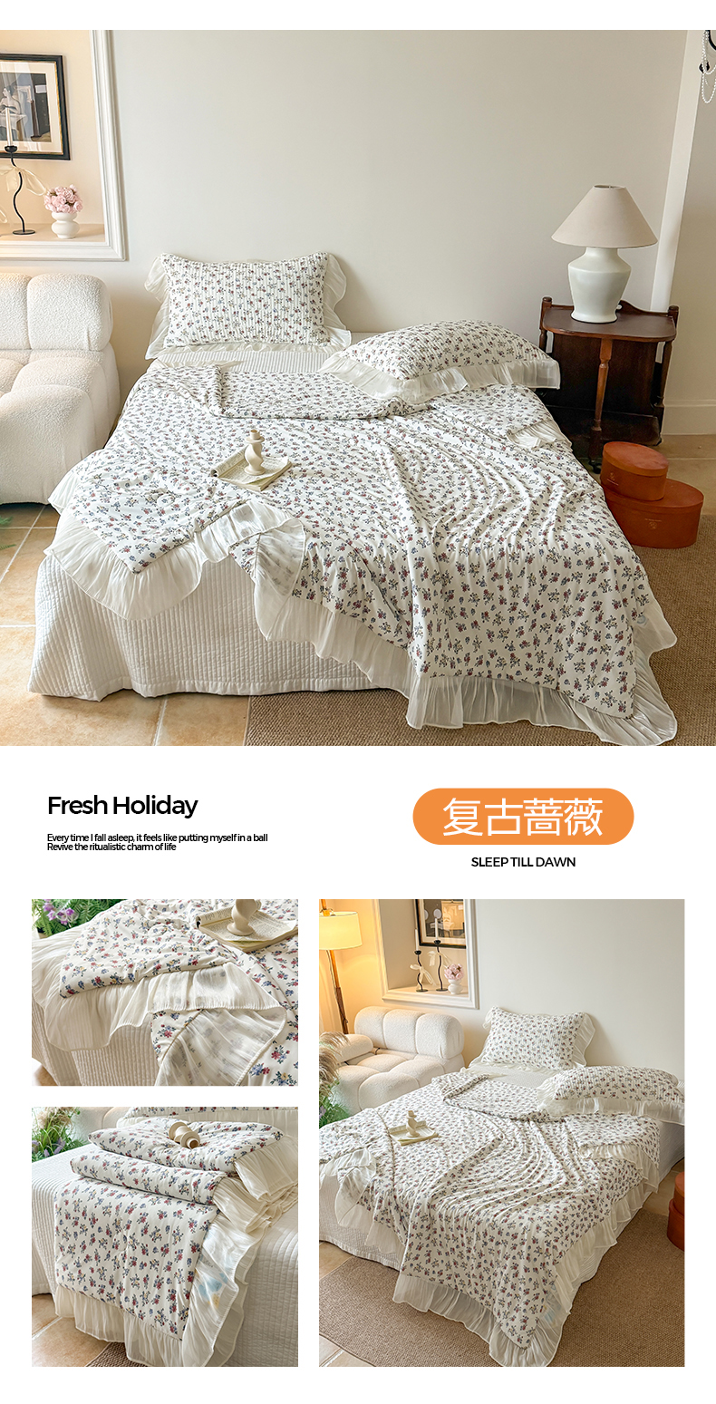商品名称:吾欢心 2026新款法式花边凉感丝夏凉被空调被夏被可机洗 清蔓雅序