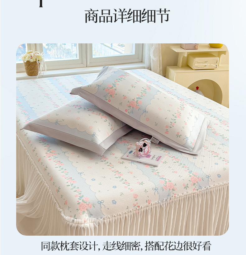 (总)宜派家纺 2026新款夏季花卉冰丝床裙席凉感值过0.21单件夏天冰豆豆A类可机洗学生宿舍空调软席,花知晓-床裙,草莓甜心-床裙,春漫庭-床裙,丛林小兔-床裙,丛林小熊-床裙,花影-床裙,洛克庄园-床裙,牡丹粉-床裙,田园之家-床裙
