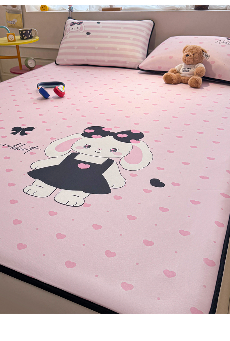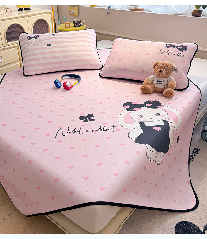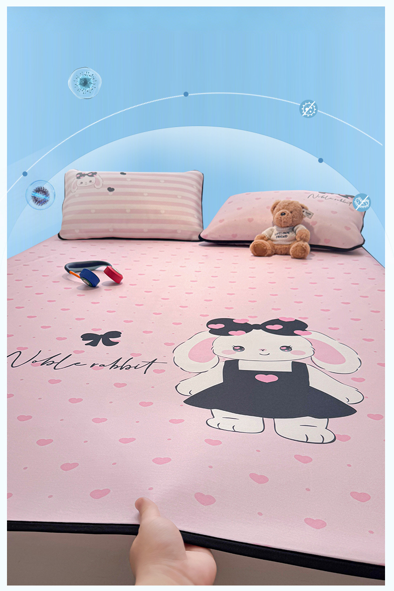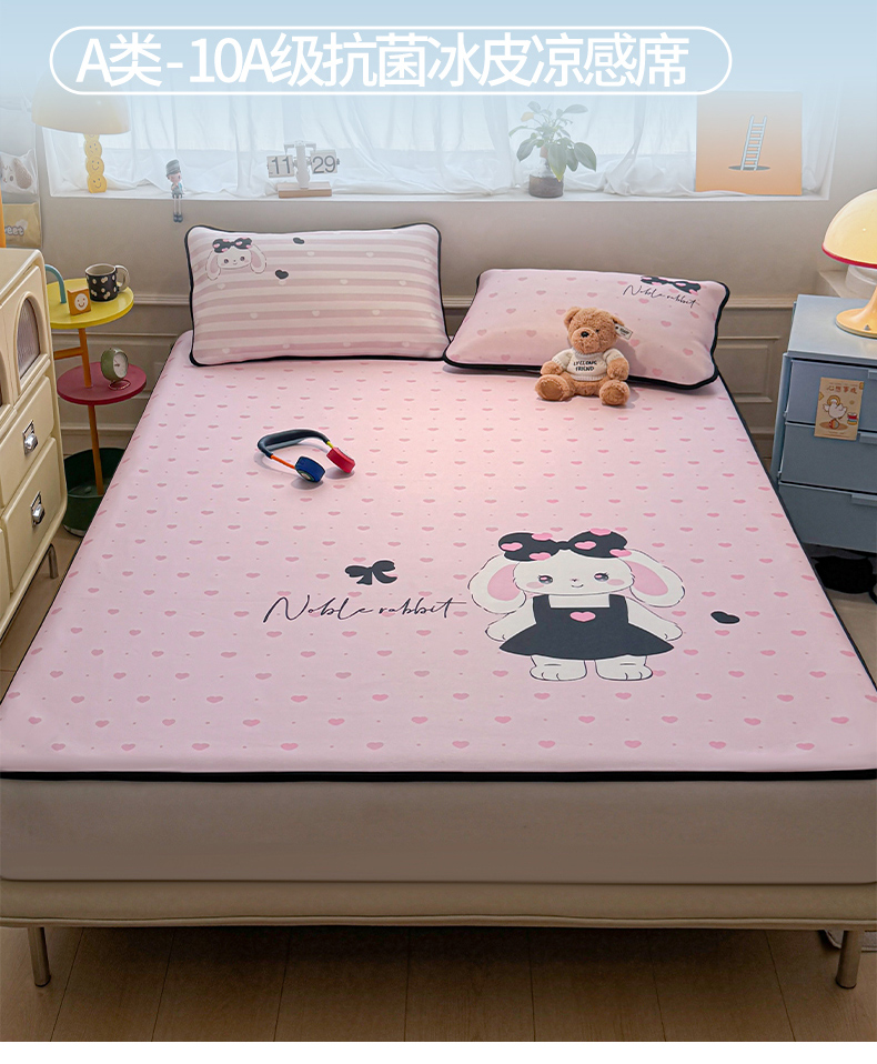 商品名称:雯豆家纺 【10A抗菌包检测】2026新款小冰皮卡通大版冰丝软席子凉席三件套凉感平铺款 小冰皮凉席-安妮兔