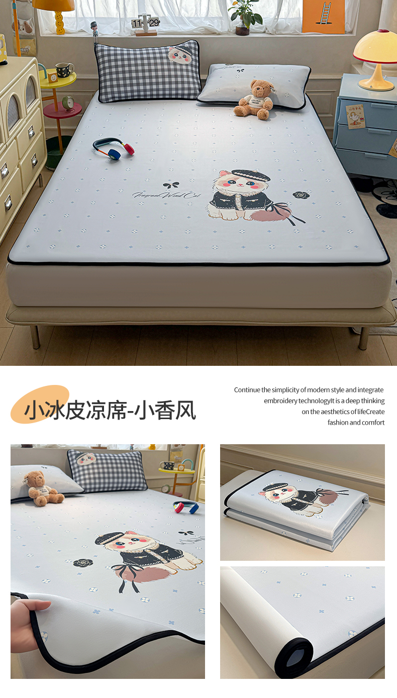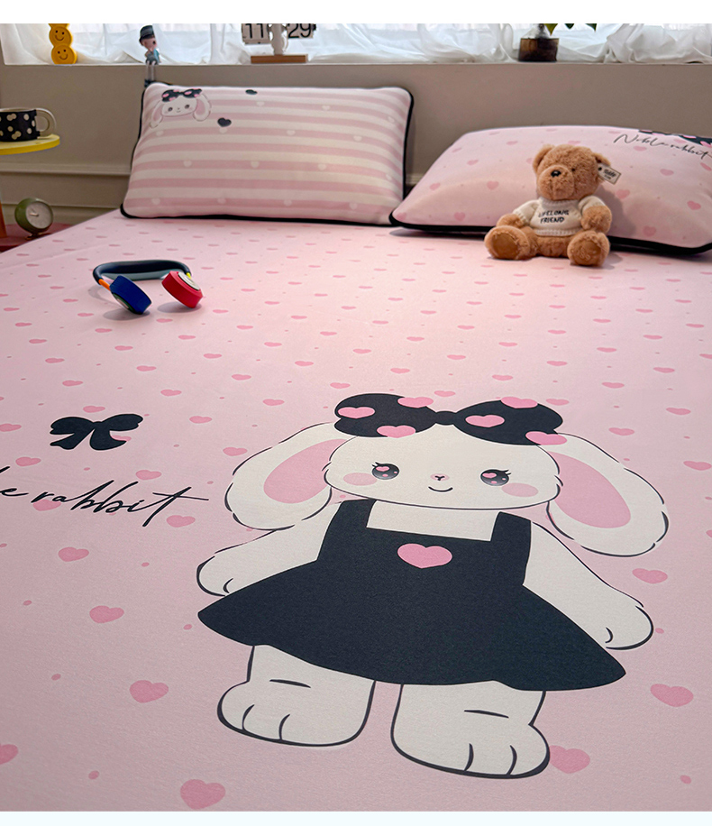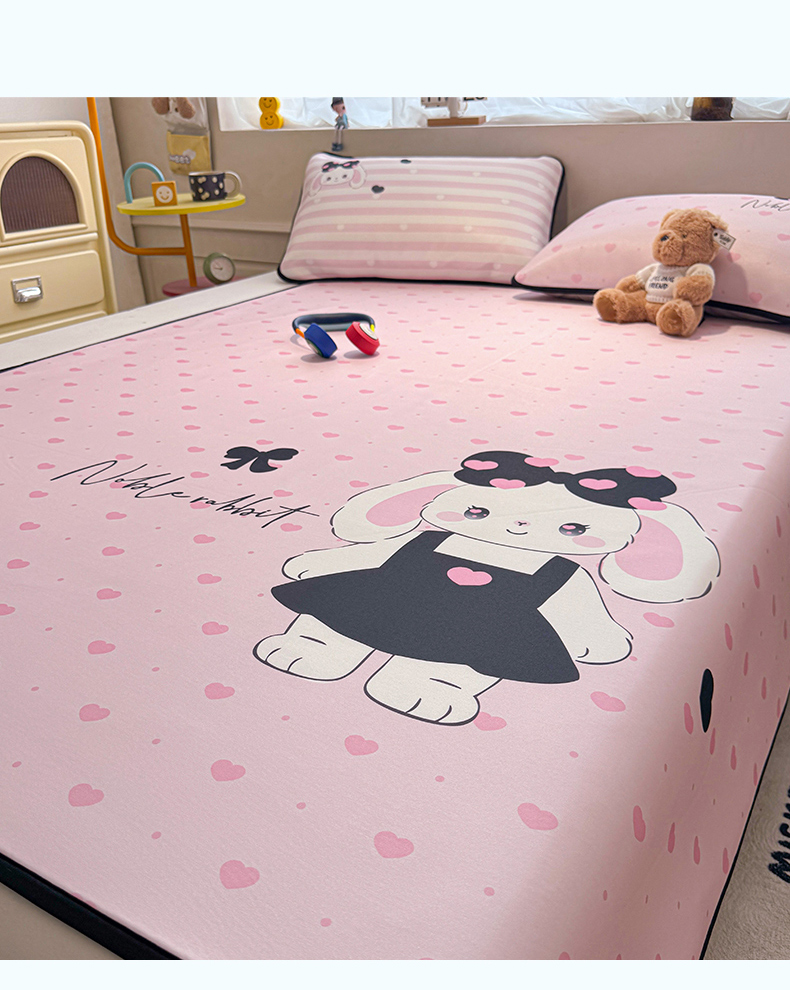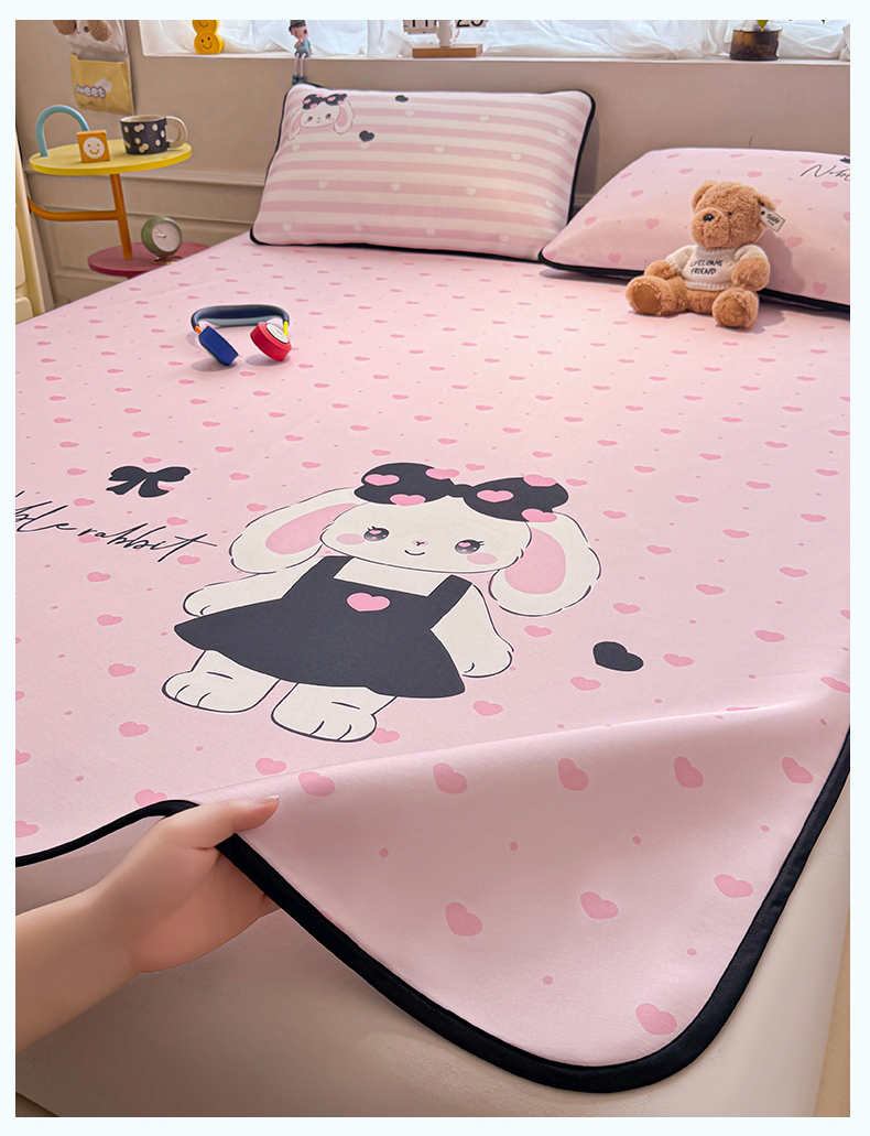 商品名称:雯豆家纺 【10A抗菌包检测】2026新款小冰皮卡通大版冰丝软席子凉席三件套凉感平铺款 小冰皮凉席-安妮兔