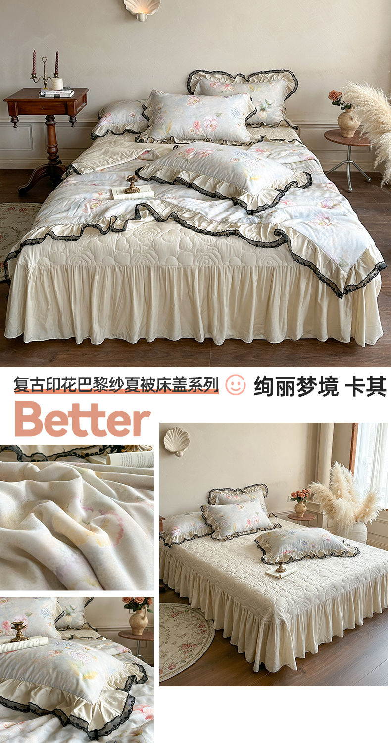 • 91家纺网 家纺一手货源 找家纺 网红馆(ck家纺) 2026春夏新款复古印花巴黎纱床盖夏凉被空调被夏被四件套 绚丽梦境 卡其