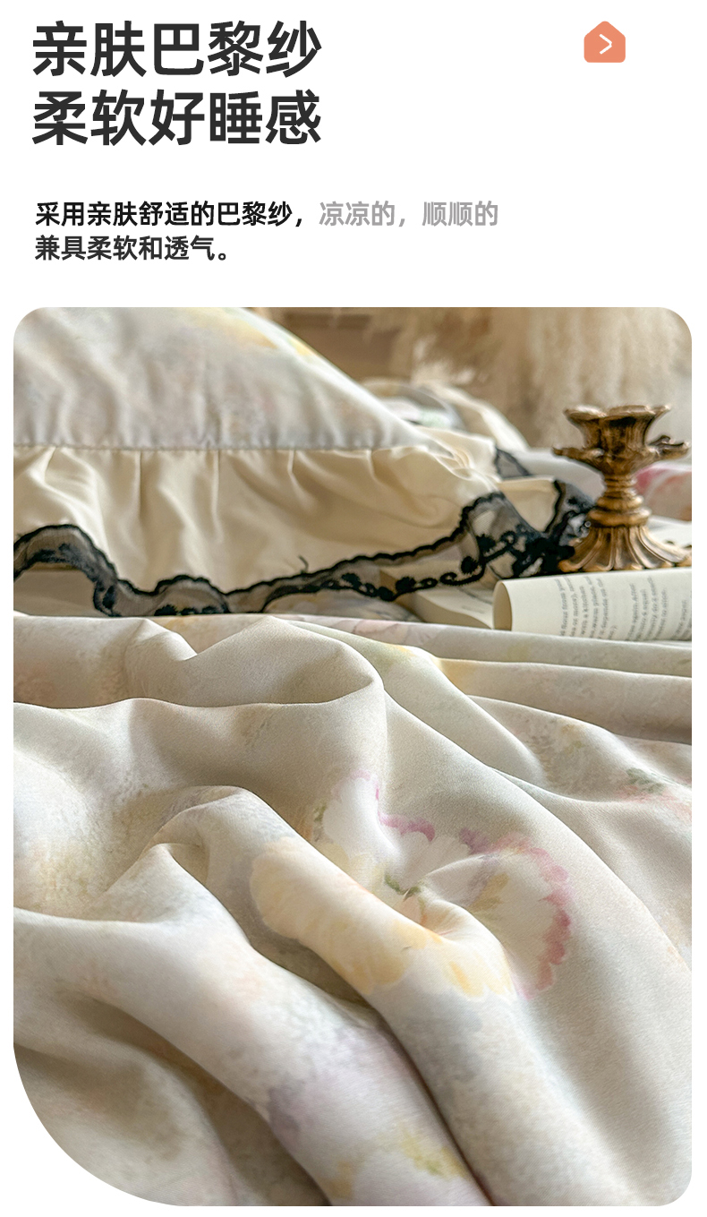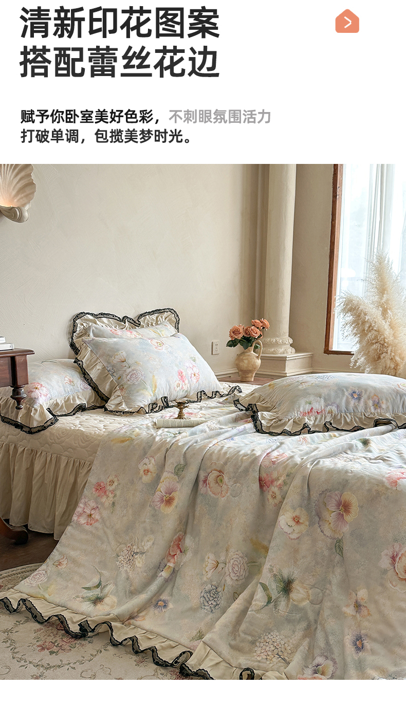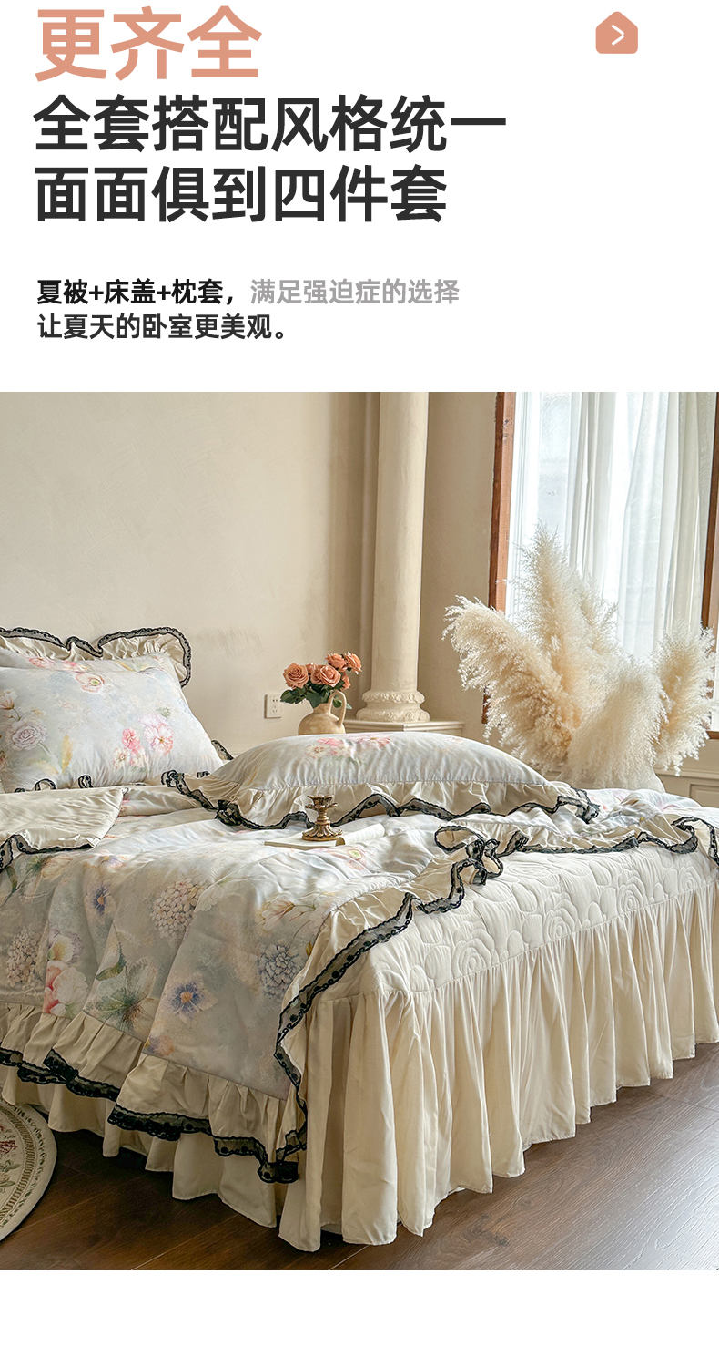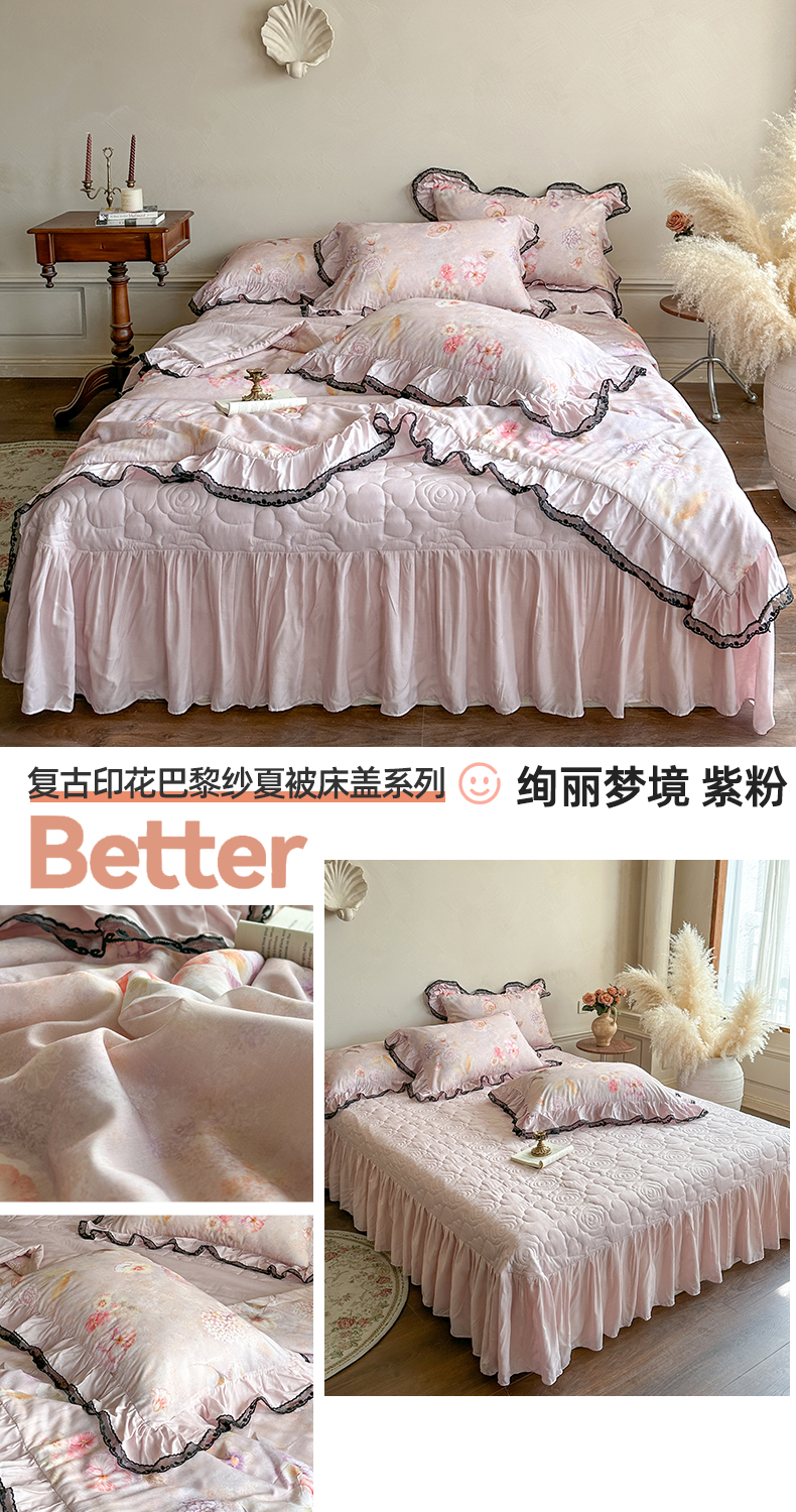 • 91家纺网 家纺一手货源 找家纺 (总)网红馆(ck家纺) 2026新款韩系巴黎纱印花床裙夏被四件套,玫瑰,梦露,薇朵,允夏
