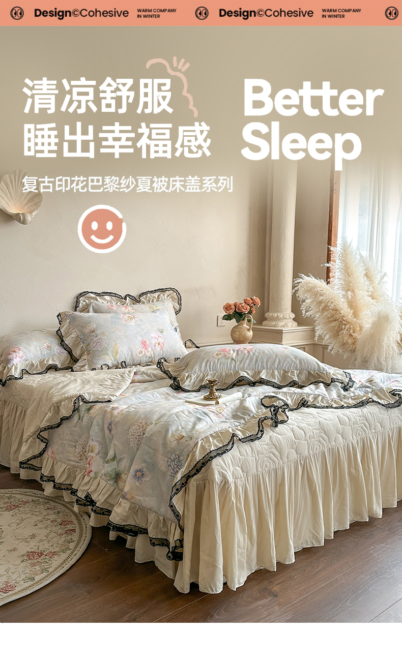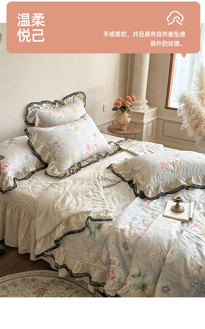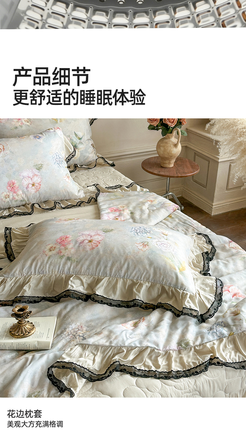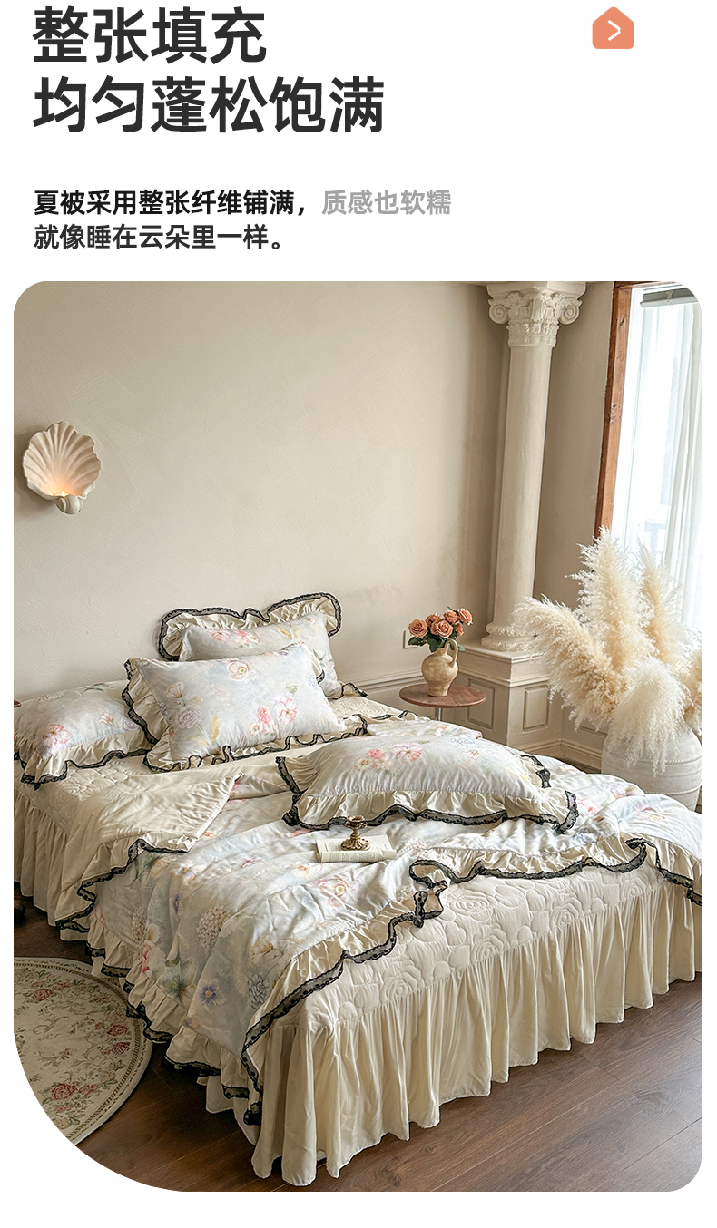 • 91家纺网 家纺一手货源 找家纺 (总)网红馆(ck家纺) 2026新款韩系巴黎纱印花床裙夏被四件套,玫瑰,梦露,薇朵,允夏