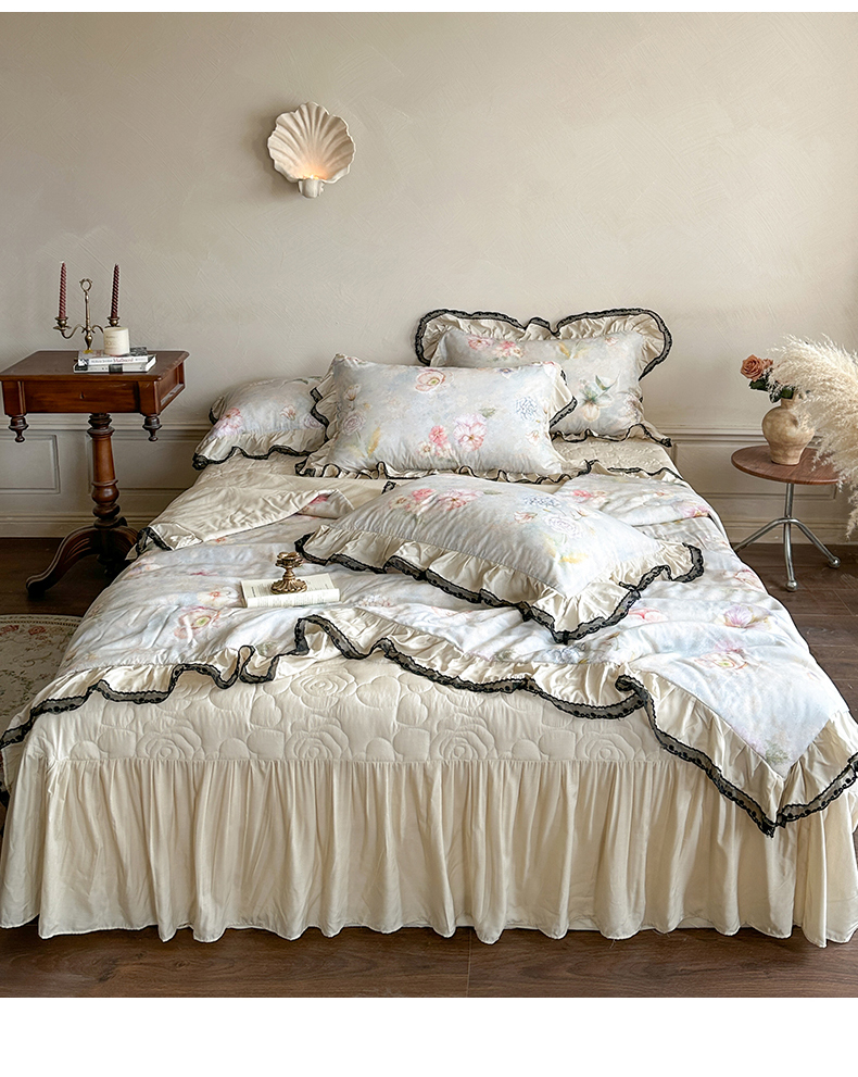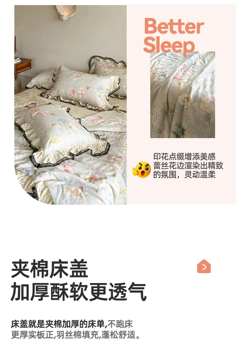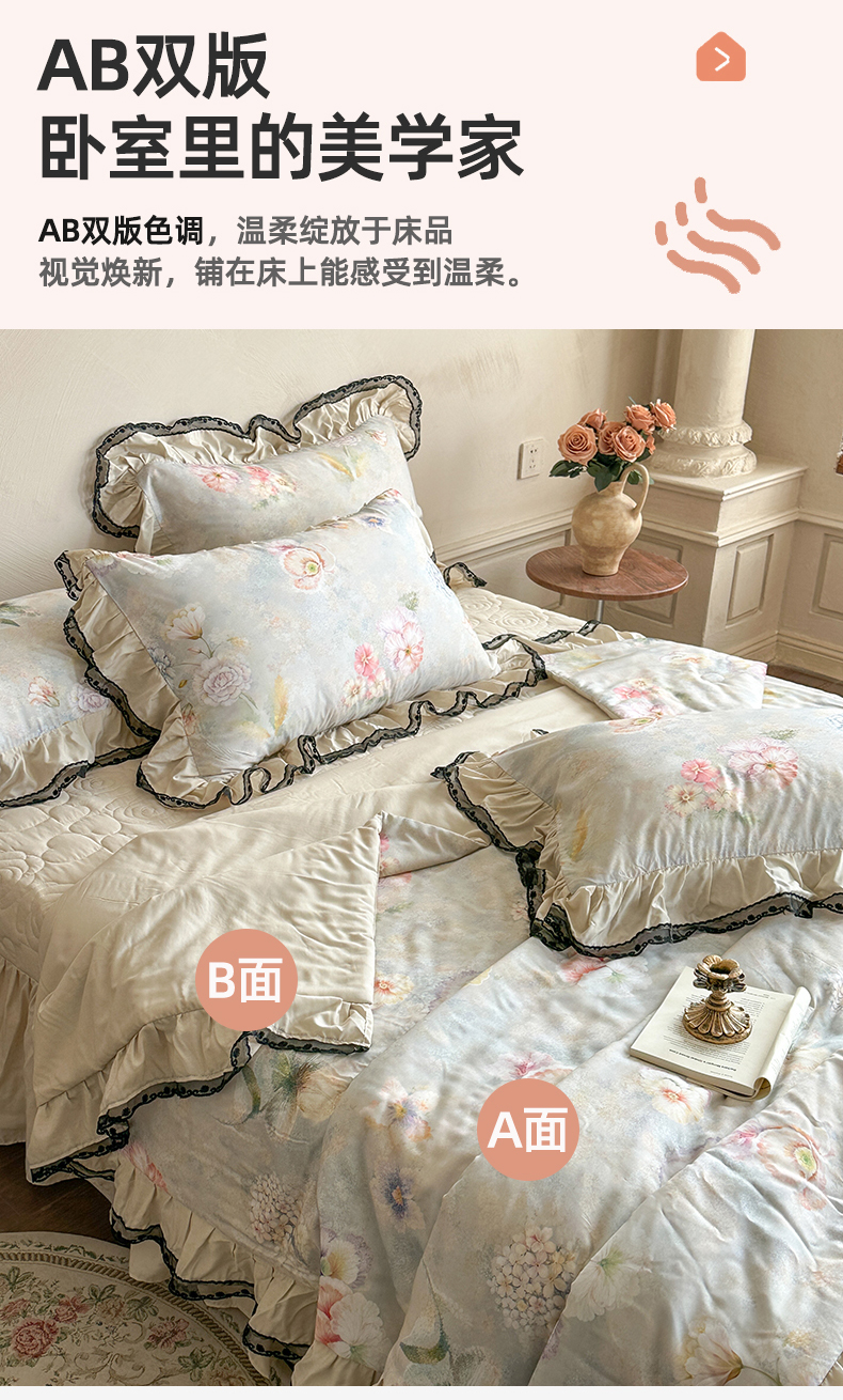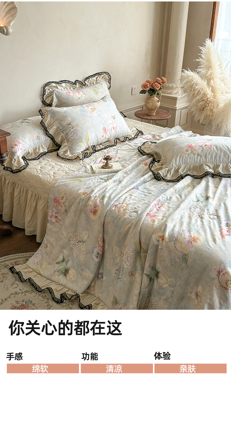• 91家纺网 家纺一手货源 找家纺 (总)网红馆(ck家纺) 2026新款韩系巴黎纱印花床裙夏被四件套,玫瑰,梦露,薇朵,允夏