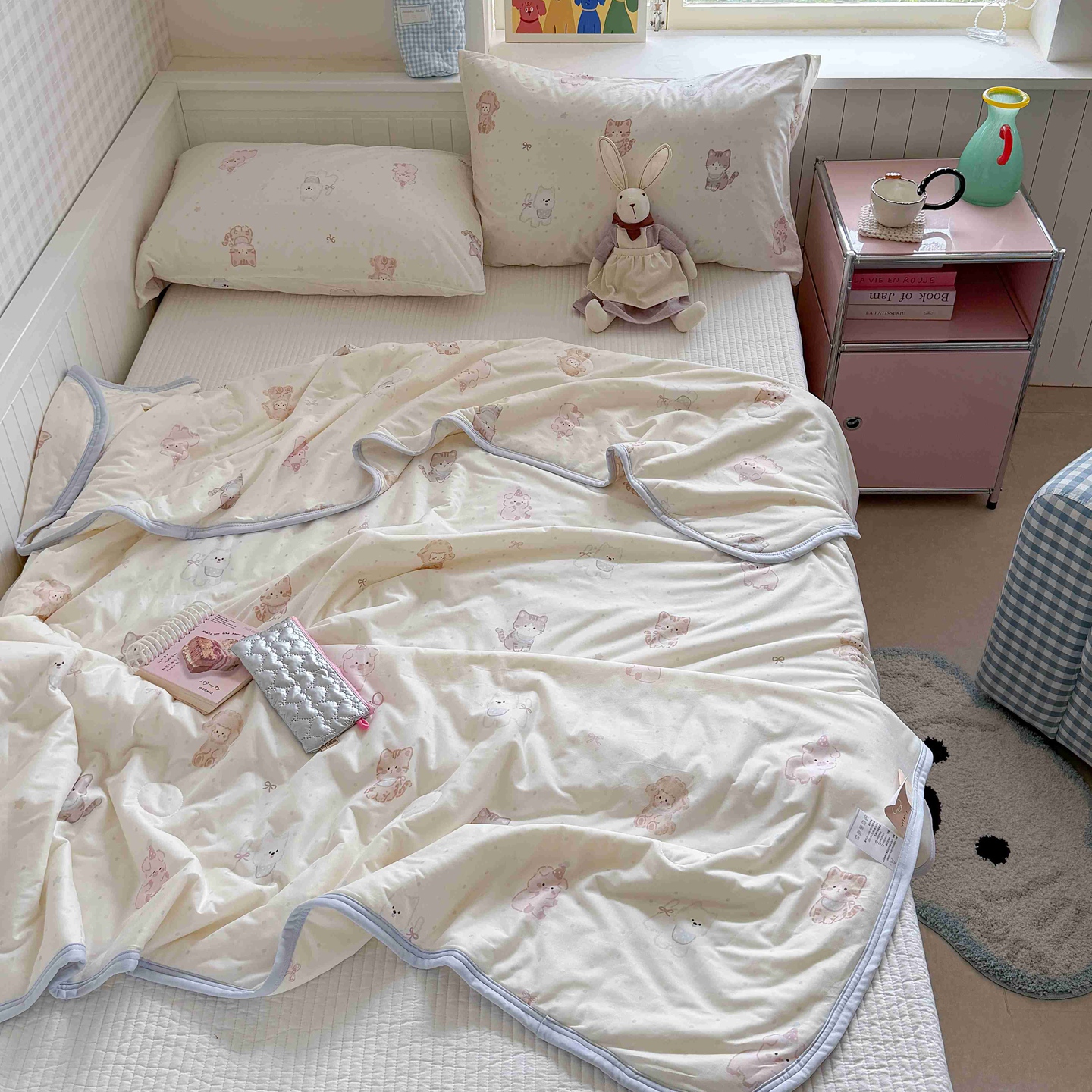 (总)觅糖家纺 2026新款针织云柔大豆夏被夏凉被空调被,豹纹猫咪粉,豹纹猫咪蓝,春屿,费尔岛小猫,风铃草,狗狗乐园,海盐小熊,花卉小马,萌宠乐园,萌萌小熊,莫奈,奶糖兔,森野,田园萌兔,甜甜樱桃,童趣小猫,幸运星,摇摇马,组合图(仅供展示不可下单)