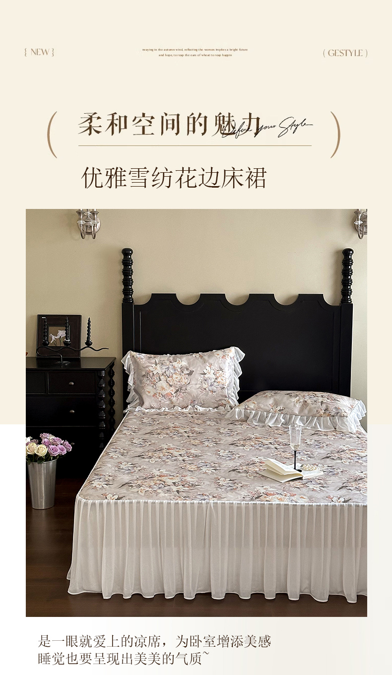 (总)JUICY 橘滋家纺 2026新款法式复古数码印花床裙冰丝席凉席席子,薄暮絮语,翡冷翠之梦,风之信笺,手作童话,维多利亚花园手扎,雾绘,叶间小夜曲,紫藤垂帘