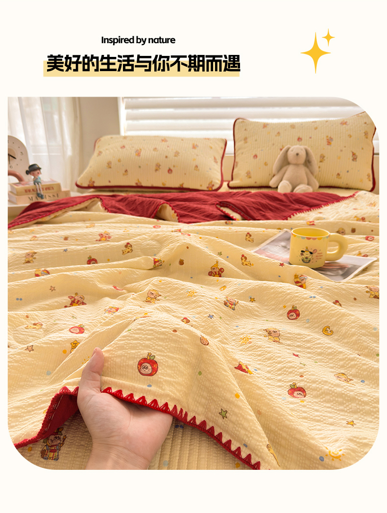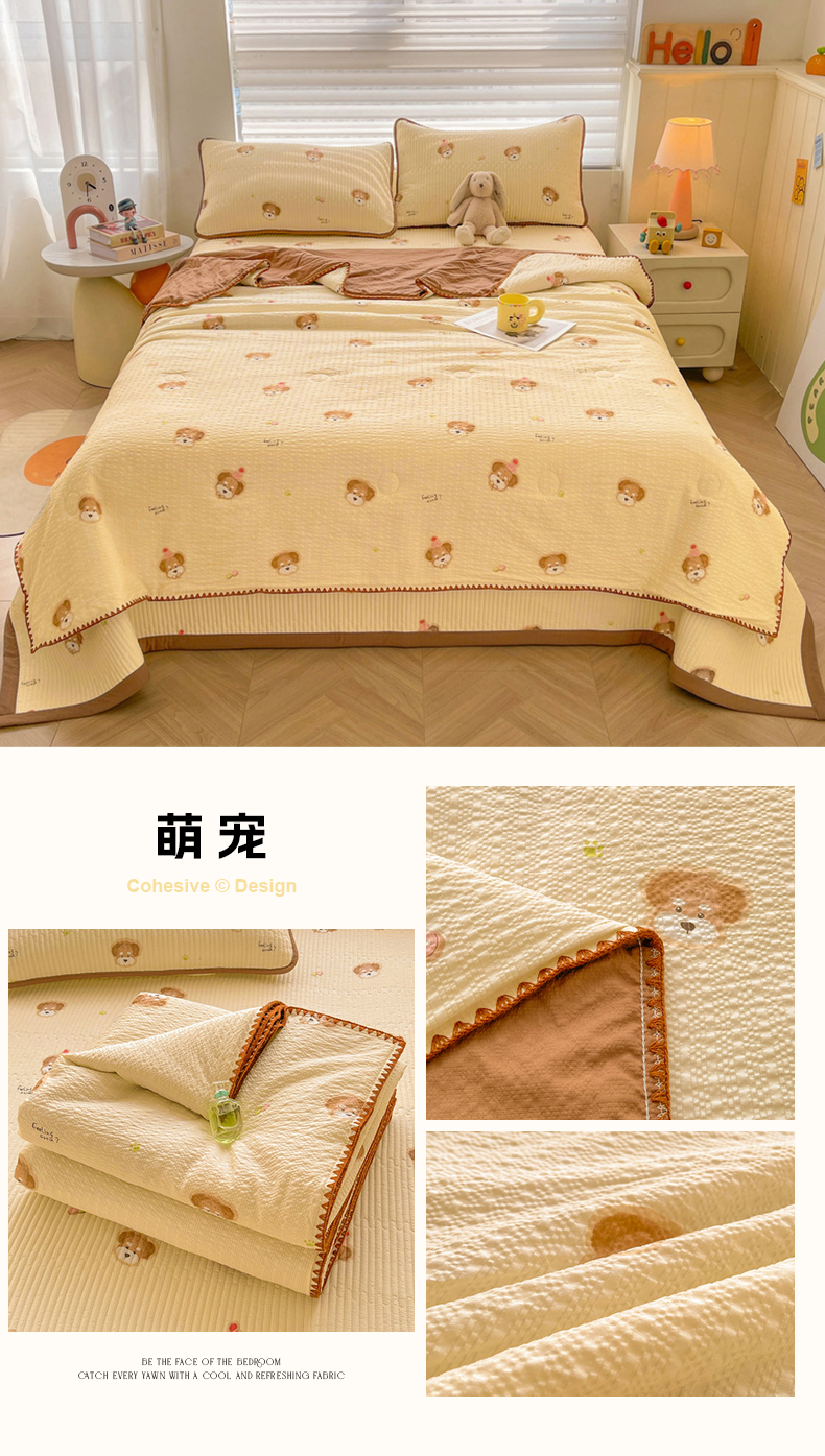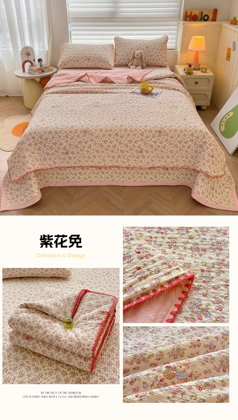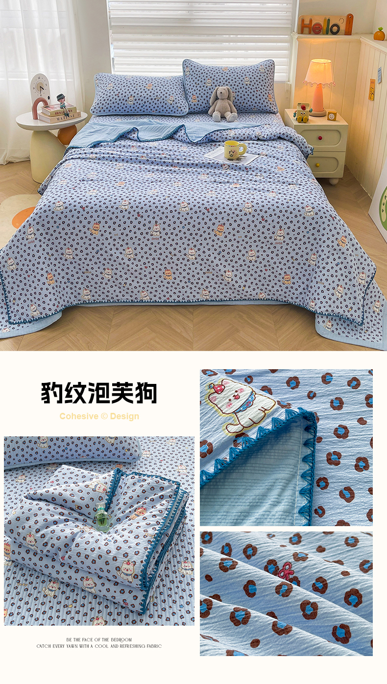 • 91家纺网 家纺一手货源 找家纺 (总)梵朴 2026新款A类泡芙双层纱贝壳边床盖夏被四件套三角针夏凉被空调被,豹纹泡芙狗,春日花语,璀璨星空,费尔岛木马,蝴蝶结小兔,花从小兔,花季紫,酒渍樱桃,快乐马里奥,快乐小狗,蓝调爱心,蓝色领结狗,猫咪蓝,萌宠,木马小花,暖蔷枝,泡芙KT-绿,泡芙KT-紫,甜品萌狗,星星玩偶黄,星星玩偶紫,紫花免,组合图