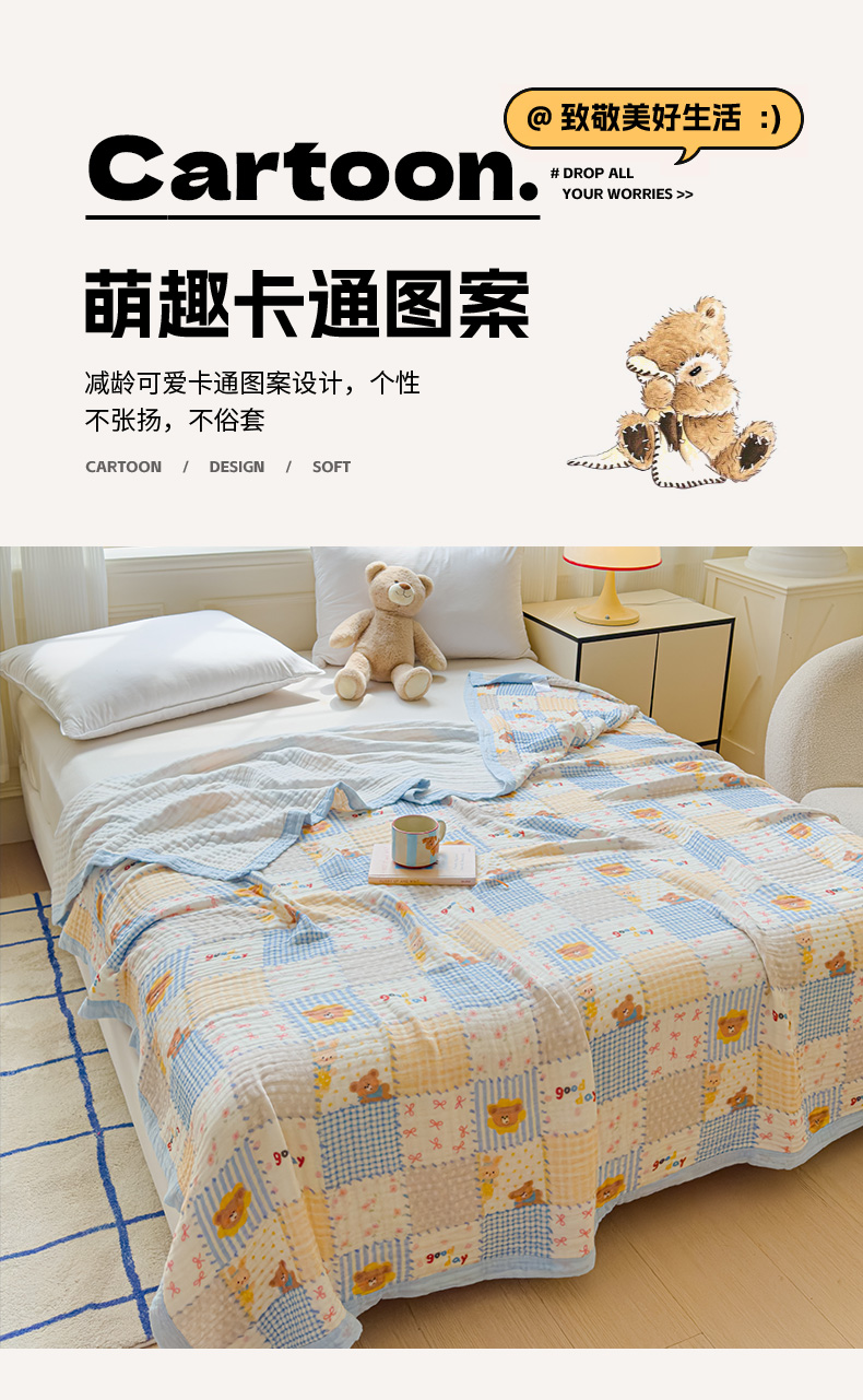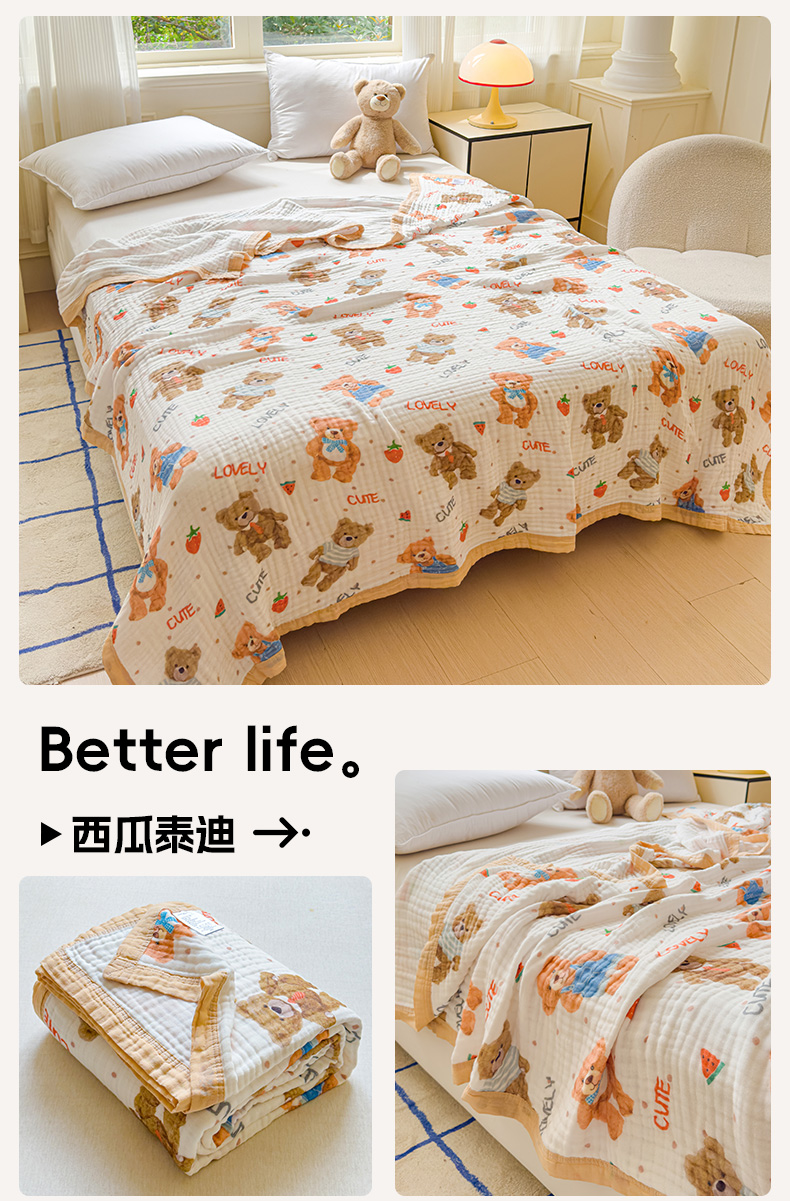 (总)乐家毛巾被(工厂自产自销) 2026新款全棉纯棉六层一体超柔泡泡纱多功能毯,春日花语,动物汽车,繁花季,格子小熊,蝴蝶结,卡通飞机,卡通工具,泰迪小马,涂鸦,西瓜泰迪,游乐园