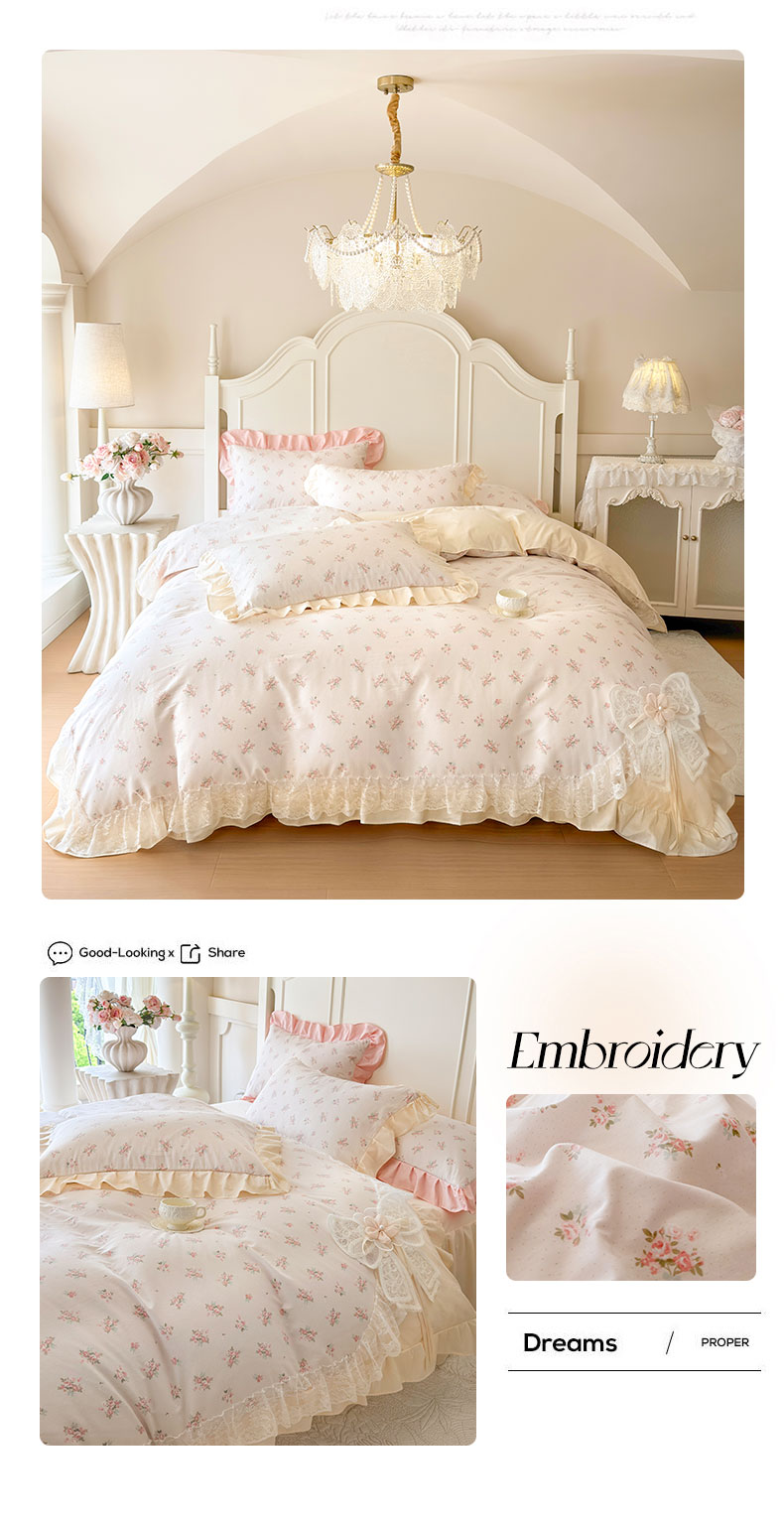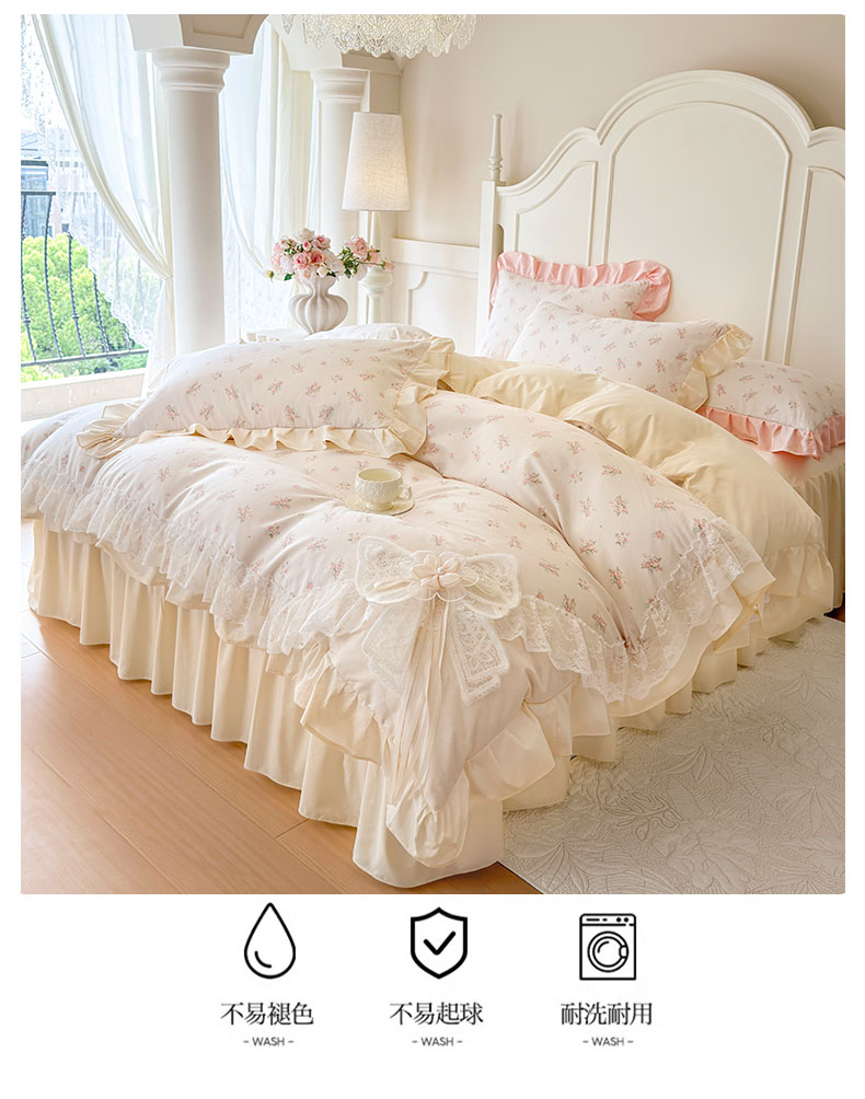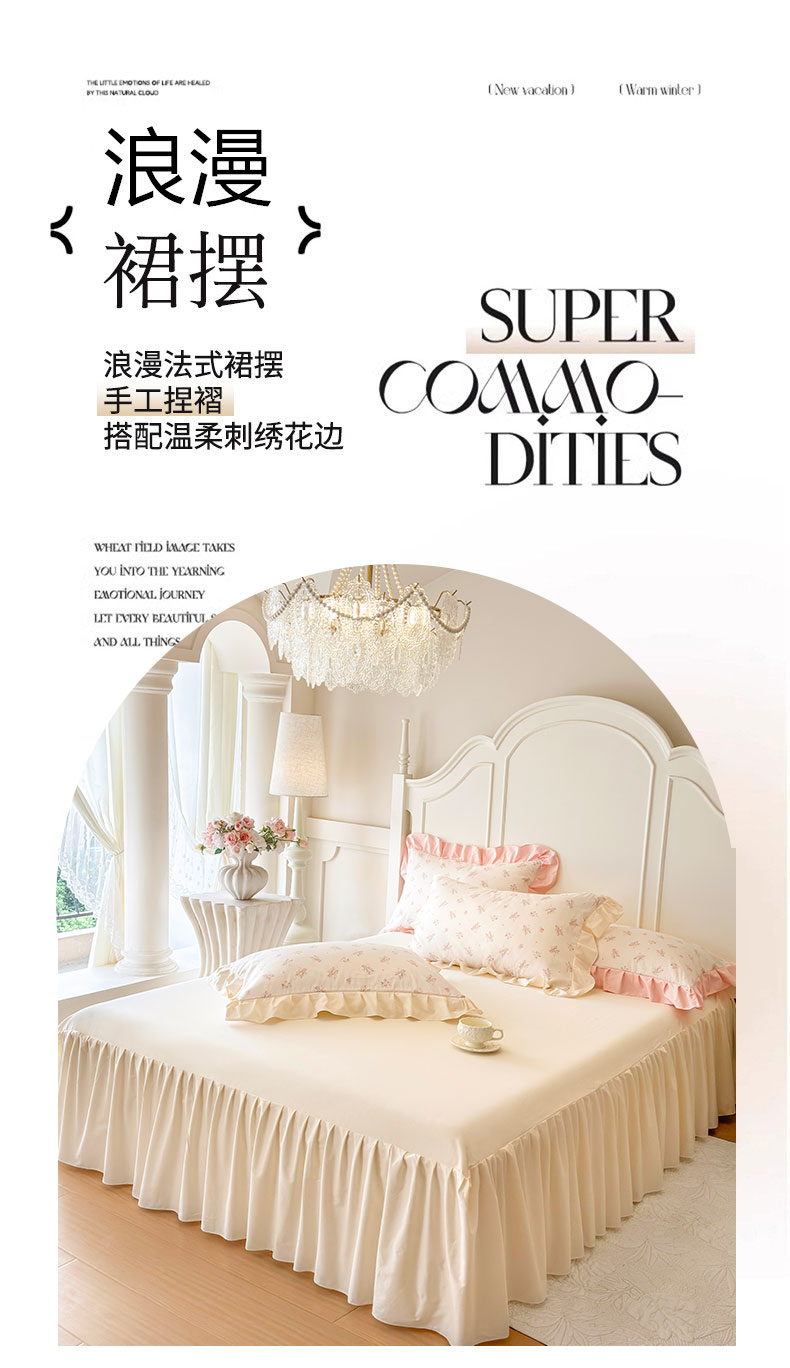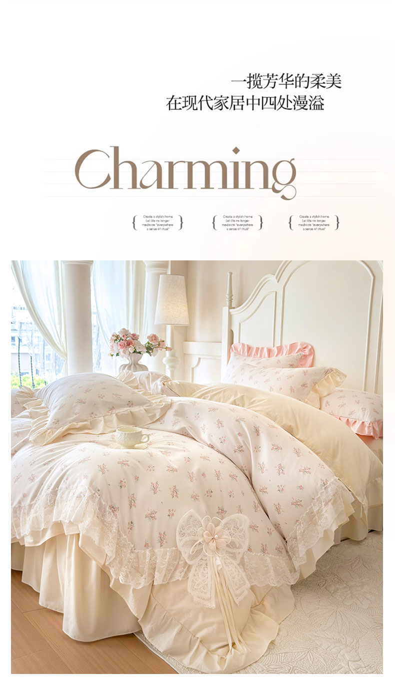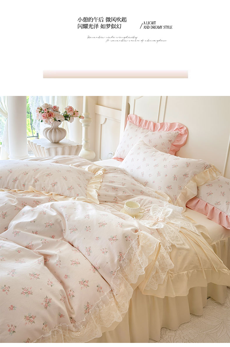 当前位置: 91家纺网 > 商品网购 > 床品套件 > 四件套 > 全棉普通四件套 > 花香四季家纺 2026新款法式全棉纯棉印花床裙款四件套-法式甜心 法式甜心-米白