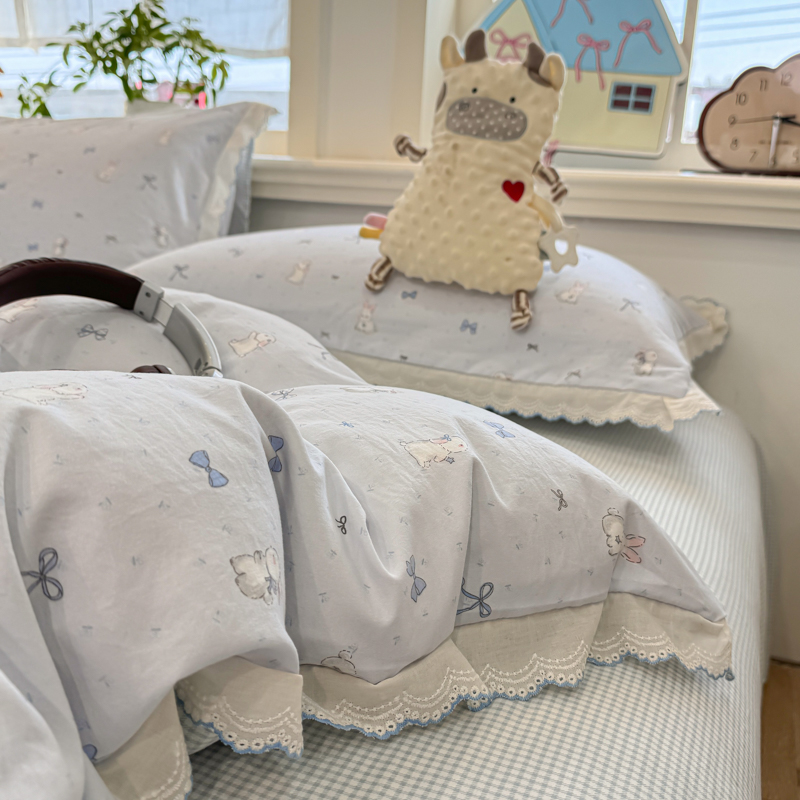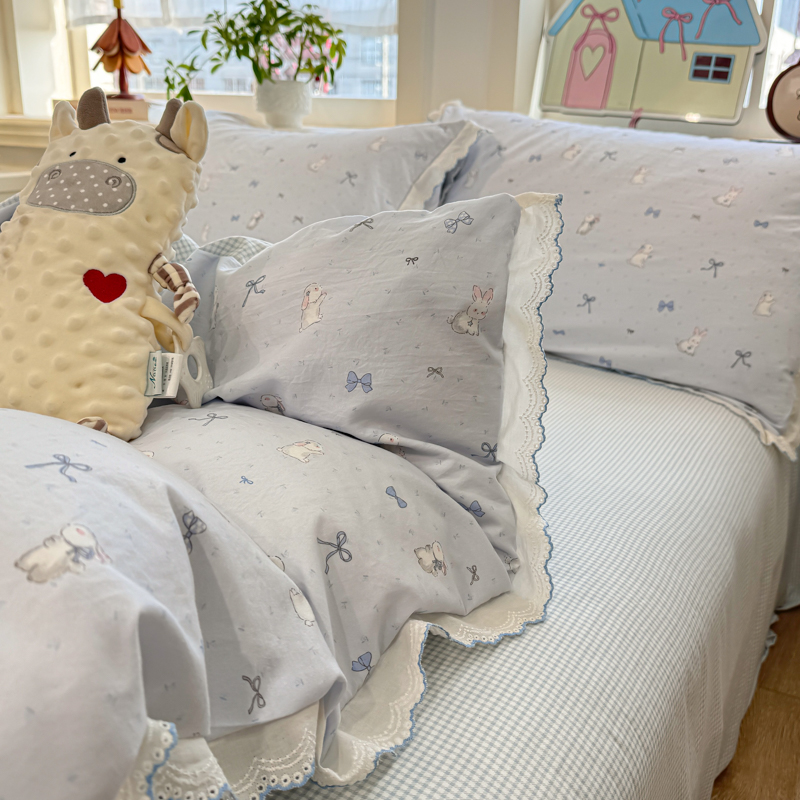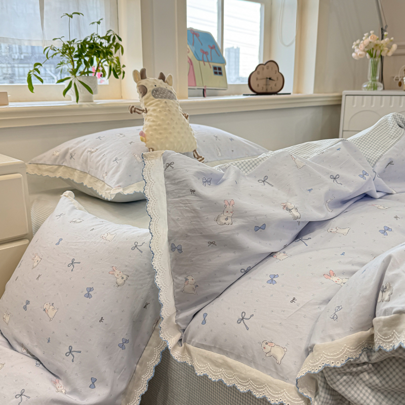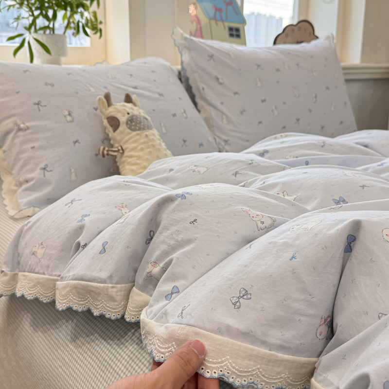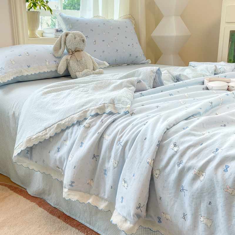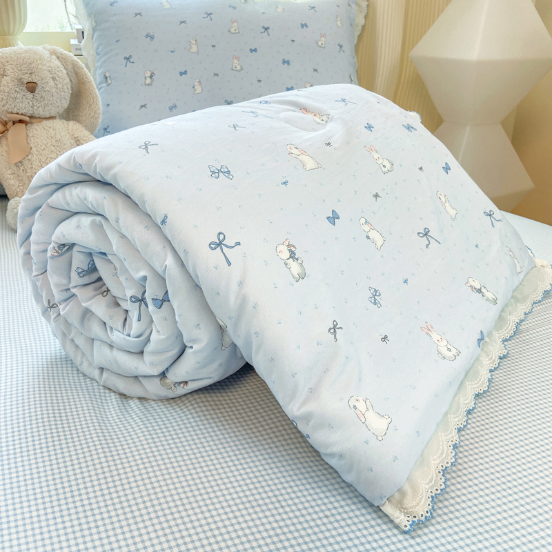 漫仙阁家纺 2026新款云感泡芙棉夏被四件套 蓝色小兔