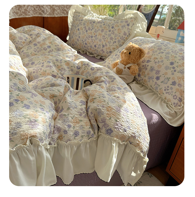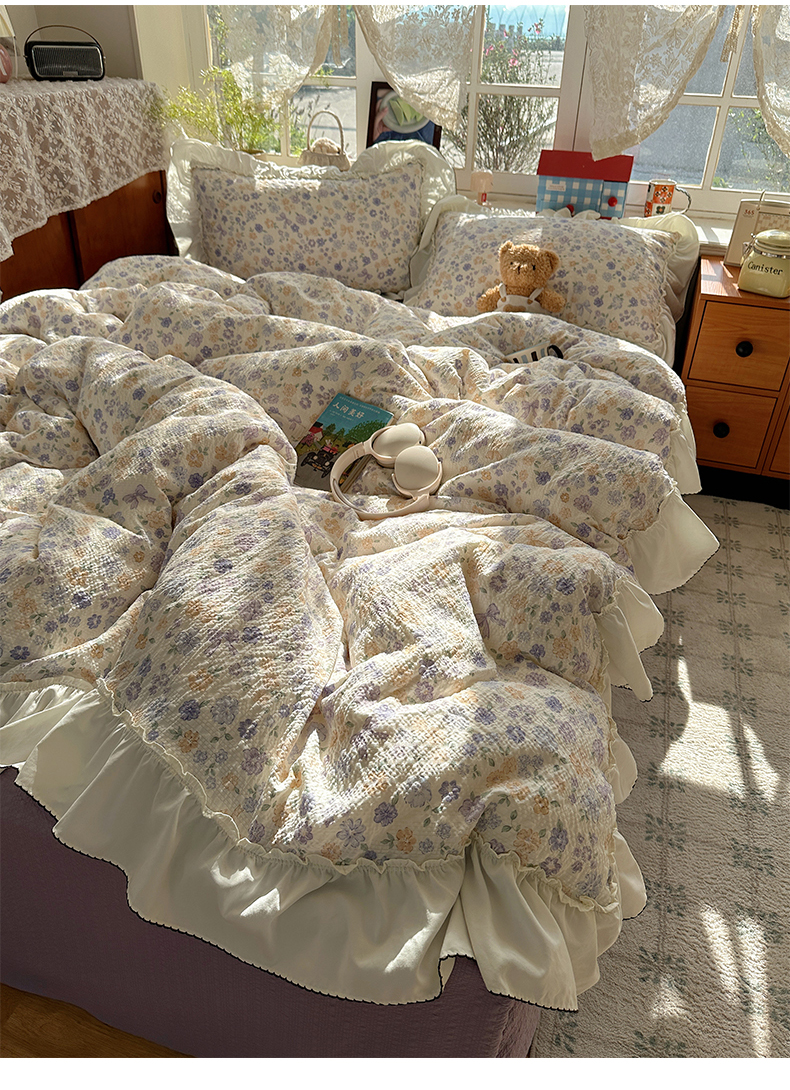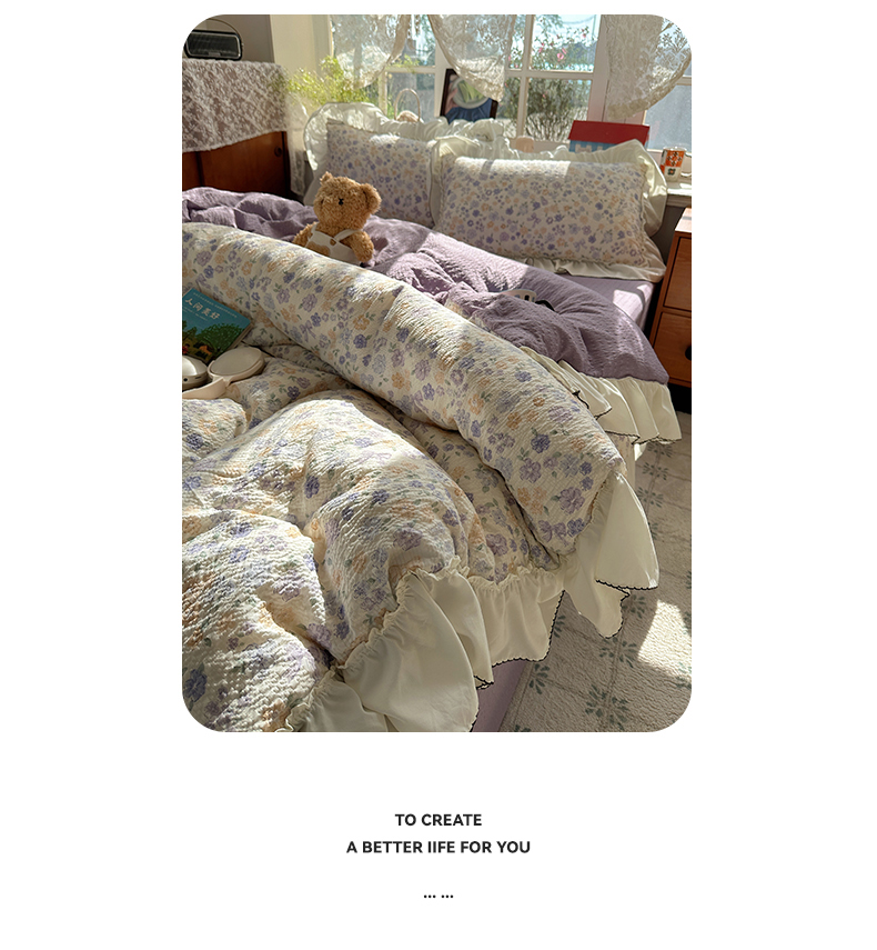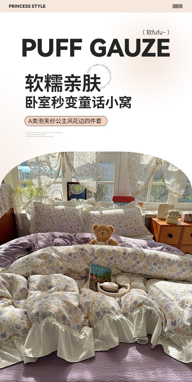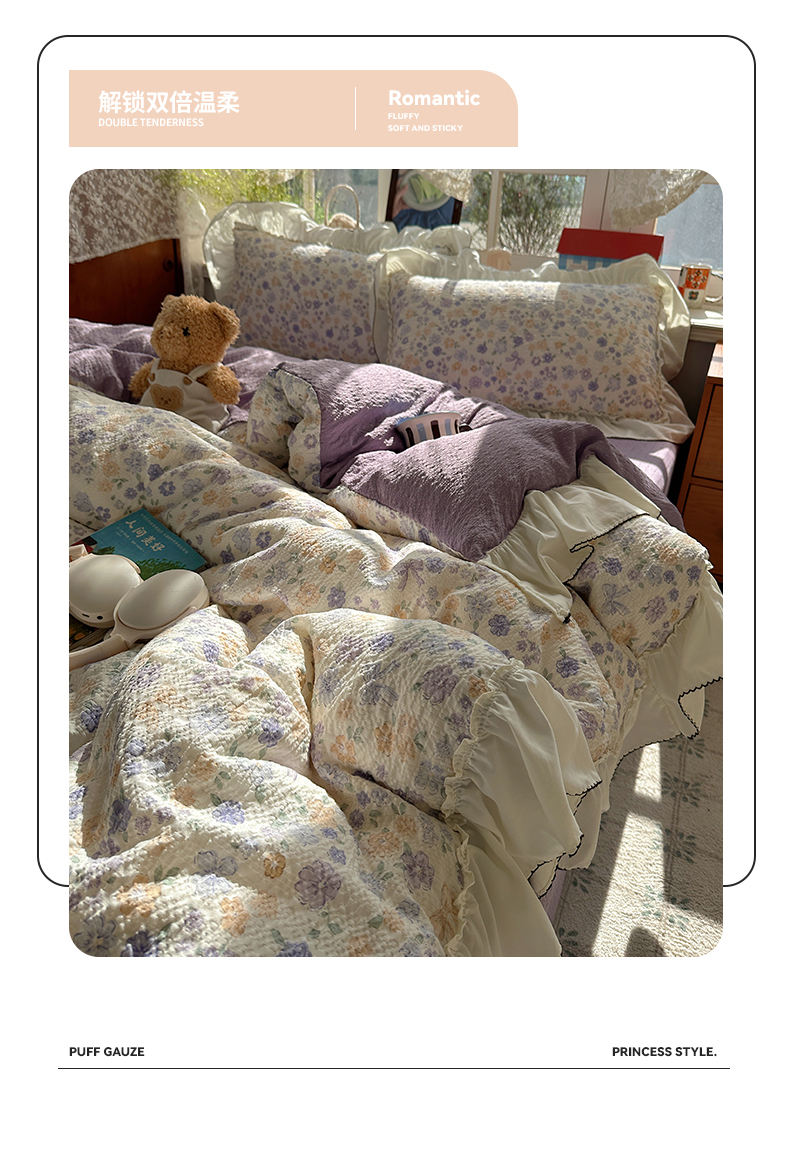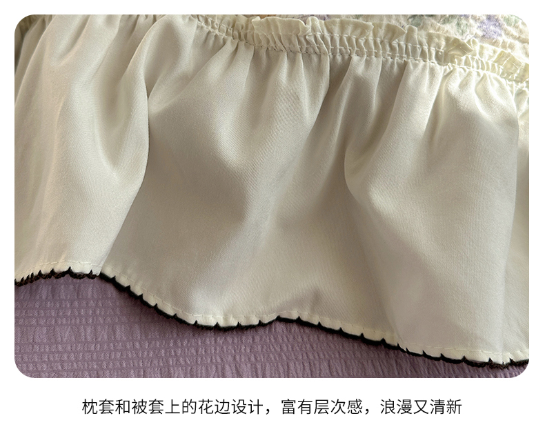 当前位置: 91家纺网 > 商品网购 > 床品套件 > 四件套 > 化纤普通四件套 > 凯洛奇 2026新款公主风云感泡芙纱花边款四件套 紫花语