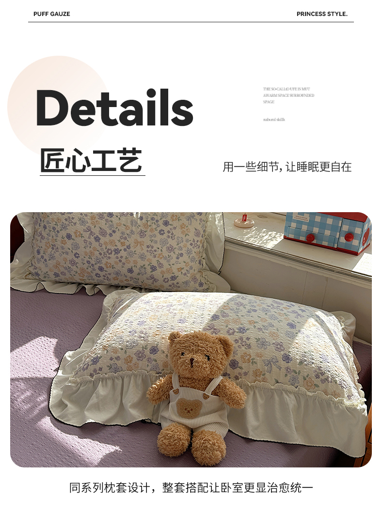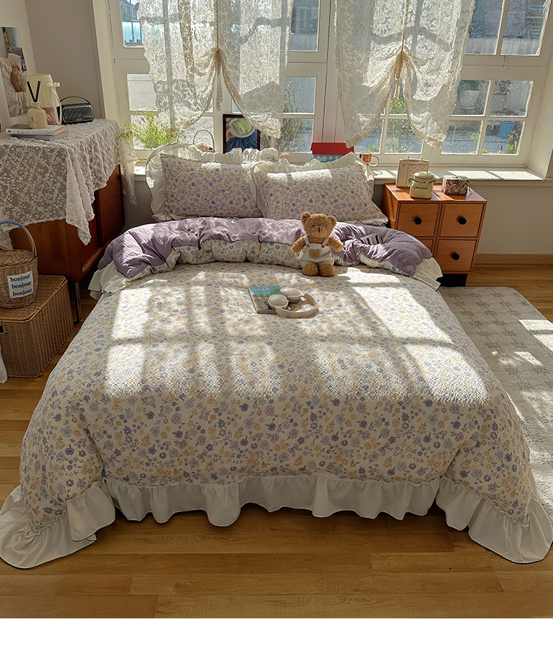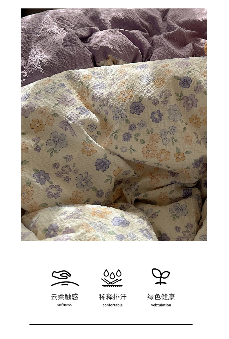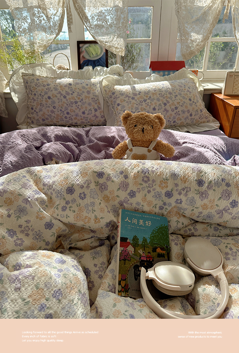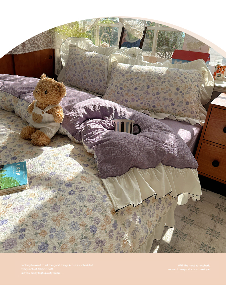 当前位置: 91家纺网 > 商品网购 > 床品套件 > 四件套 > 化纤普通四件套 > 凯洛奇 2026新款公主风云感泡芙纱花边款四件套 紫花语